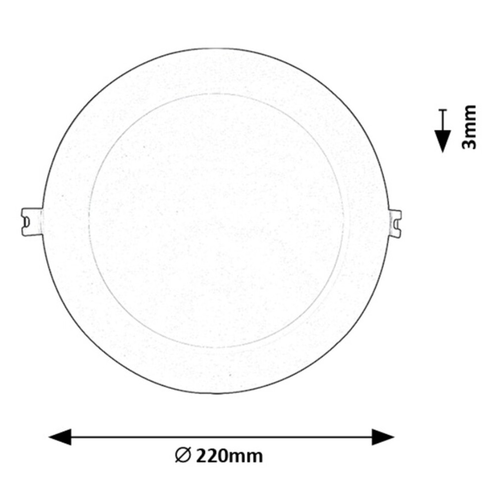 A Shaun 2 Rábalux 071235 süllyesztett mennyezeti LED panel 18 W teljesítményű, beépített LED modullal rendelkezik, amely 1360 lumen fényáramot biztosít hidegfehér, 4000 K színhőmérséklettel. A lámpatest átmérője 220 mm, magassága 3 mm, beépítési mélysége 25 mm, fehér műanyagból készül, így modern és letisztult megjelenést kölcsönöz a belső tereknek. Az IP20 védettségű panel 230 V névleges feszültségen üzemel, energiaosztálya G, átlagos élettartama eléri a 25 000 órát. A termék tömege 0,165 kg, csomagolási méretei 25x25x4 cm. A LED panel ideális általános világítási feladatokra beltéri alkalmazásokban.