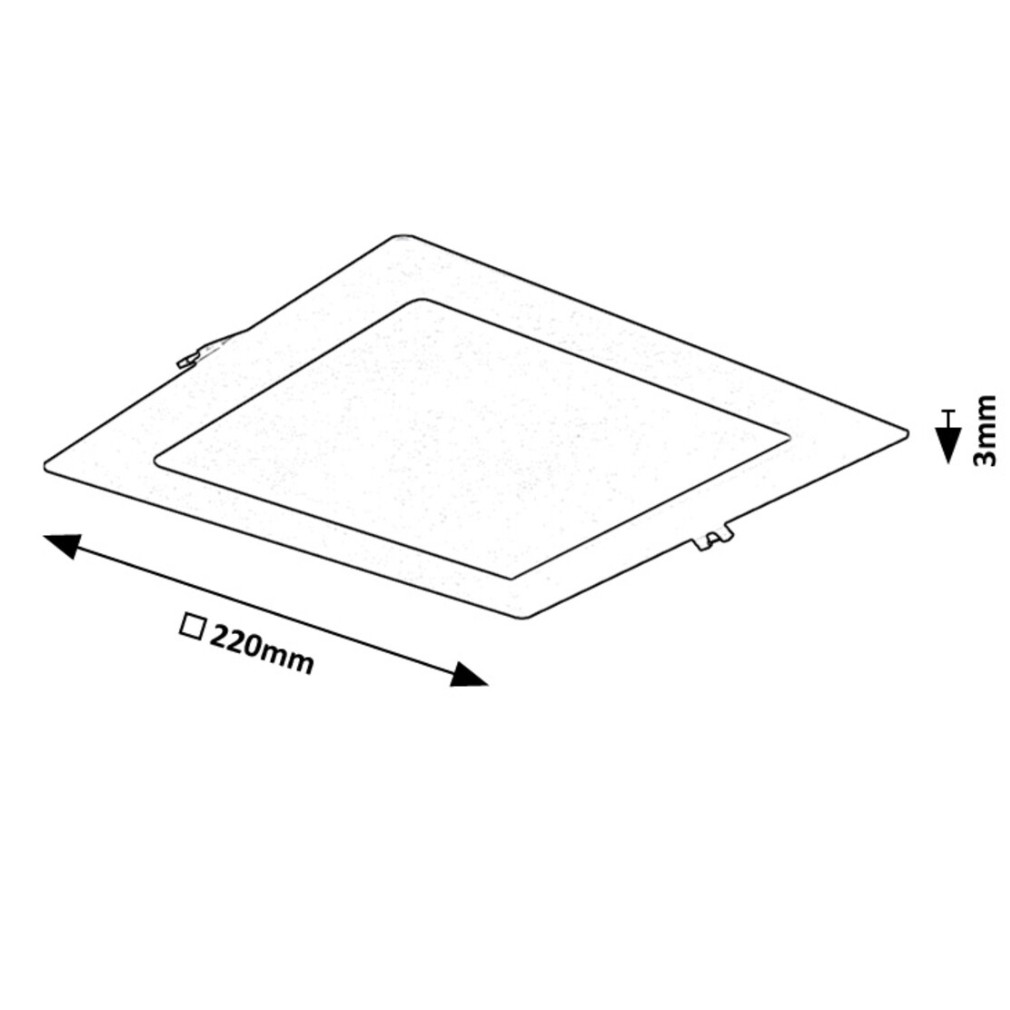 A Shaun 2 Rábalux 071231 süllyesztett mennyezeti LED panel egy 18 wattos, melegfehér fényű (3000 K) világítási megoldás, amely 1200 lumen fényáramot biztosít. A lámpatest fekete színű, műanyagból készült, modern megjelenésével harmonikusan illeszkedik a különböző belső terekbe. A panel 220x220 mm-es méretével és mindössze 3 mm-es magasságával diszkréten beépíthető, a beépítési mélysége 25 mm. A beépített LED modul hosszú, akár 25 000 órás élettartamot kínál, energiaosztálya G. A termék 230 V névleges feszültséggel működik, IP20-as védettséggel rendelkezik, így kizárólag beltéri használatra alkalmas. A csomagolás mérete 25x25x4 cm, tömege 0,188 kg. A Shaun 2 LED panel a Rábalux gyártásában készült, a logisztikai kódja 071231.