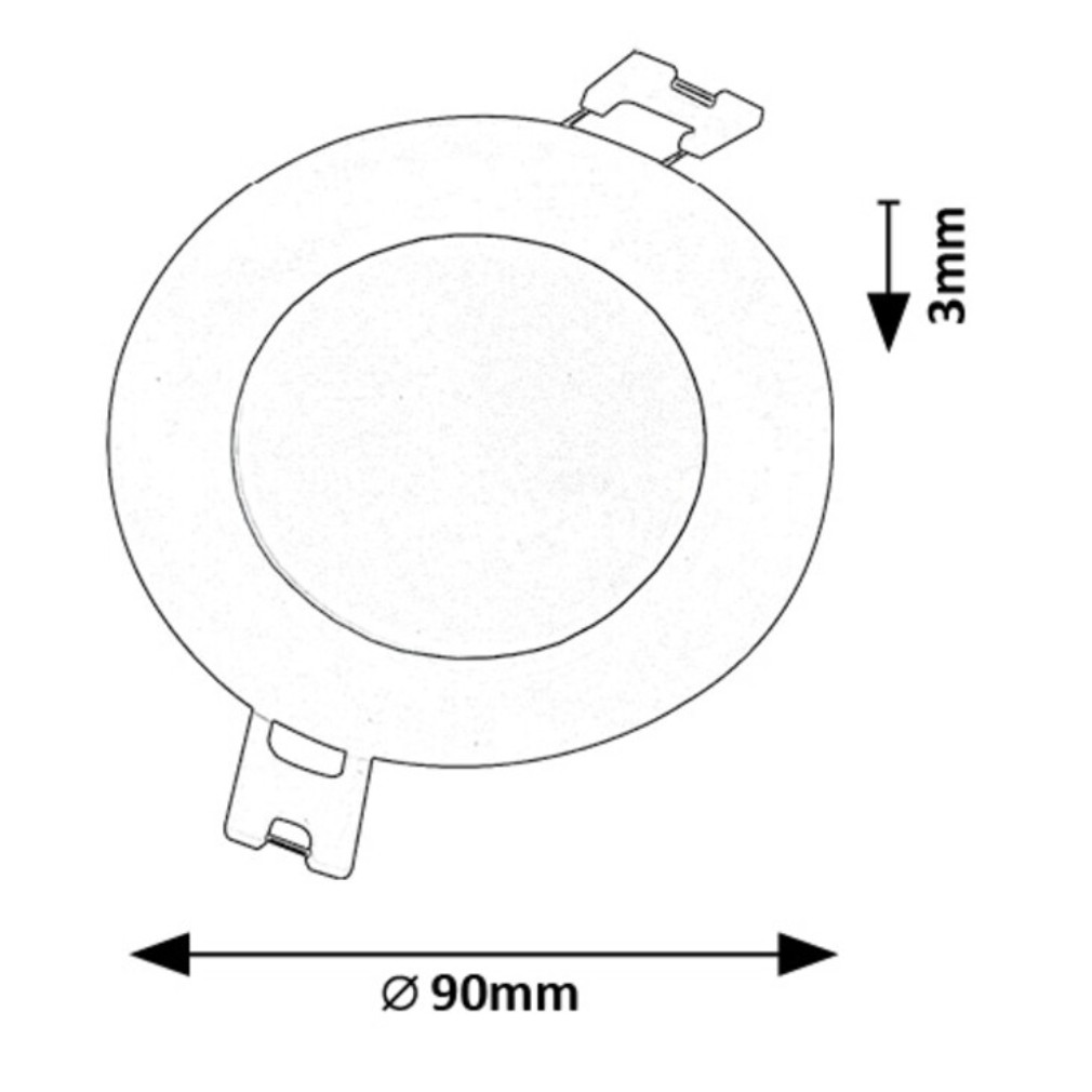 A Shaun 2 Rábalux 071224 süllyesztett mennyezeti LED panel egy 3 wattos teljesítményű, melegfehér fényű, fekete színű lámpatest, amely 200 lumen fényáramot biztosít 3000 Kelvin színhőmérsékleten. Az IP20 védettségű, 230 V névleges feszültségű panel beépített LED modullal rendelkezik, amelynek átlagos élettartama eléri a 25 000 órát. A lámpatest átmérője 90 mm, magassága 3 mm, beépítési mélysége 25 mm, anyaga műanyag. A termék energiaosztálya G, a csomagolás méretei 12x12x4 cm, tömege 0,037 kg. A panel beépített fényforrással kerül forgalomba, amely kiválóan alkalmas lakásvilágítási célokra, különösen süllyesztett mennyezeti alkalmazásokhoz.