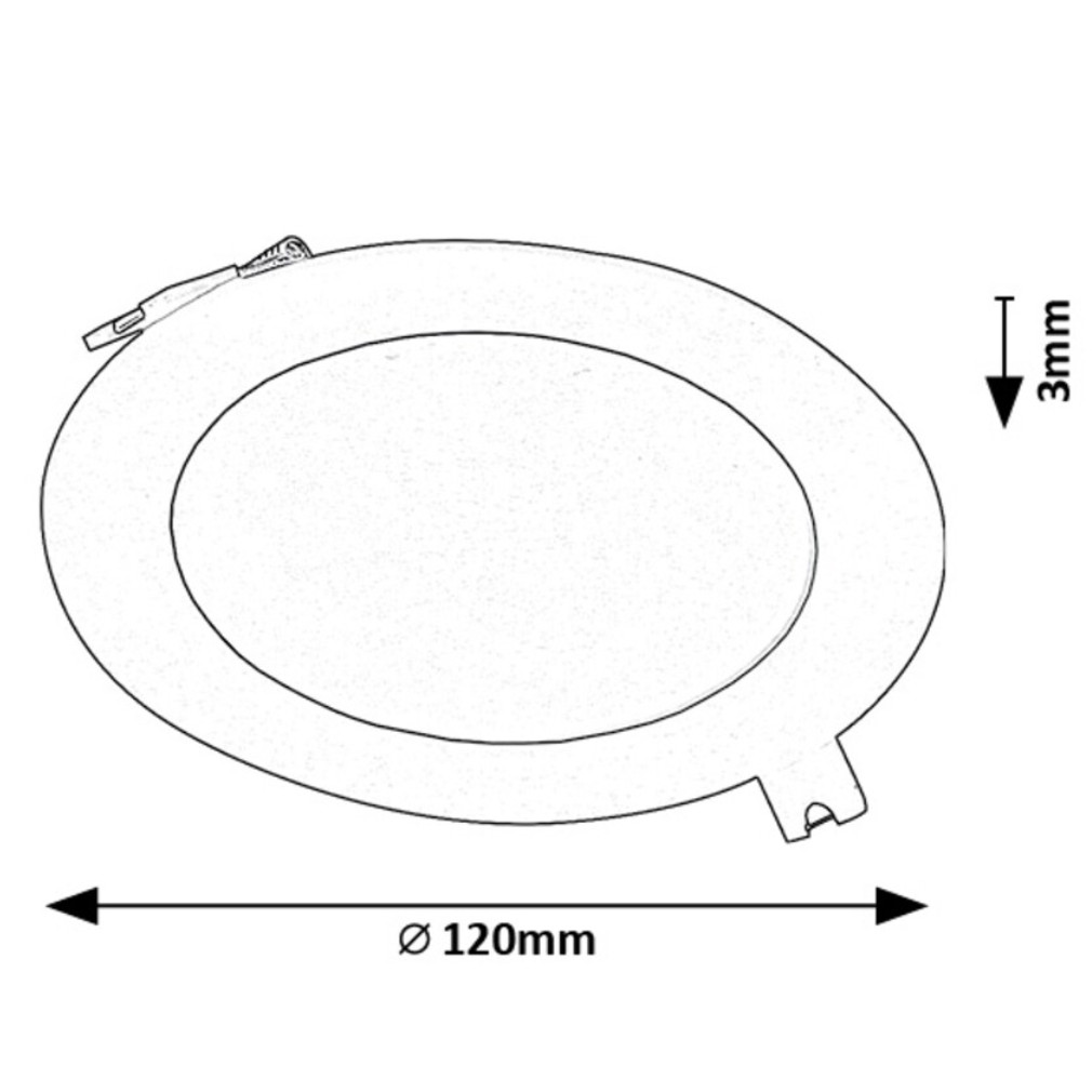 A Shaun 2 Rábalux 071225 süllyesztett mennyezeti LED panel 6 wattos teljesítménnyel és 450 lumen fényárammal biztosít melegfehér, 3000 Kelvin színhőmérsékletű világítást. A 12 cm átmérőjű, 3 mm magas fekete műanyag ház modern megjelenést kölcsönöz a lámpatestnek, miközben a beépítési mélység mindössze 25 mm, így ideális álmennyezetekhez vagy szűkebb helyekhez. A panel beépített LED modult tartalmaz, amely 25 000 óra átlagos élettartammal és G energiaosztály besorolással rendelkezik. A lámpatest 230 V névleges feszültségen üzemel, IP20 védettségi szintje pedig beltéri használatra teszi alkalmassá. A termék csomagolási méretei 15x15x4 cm, tömege 0,057 kg, a gyártó pedig a Rábalux.