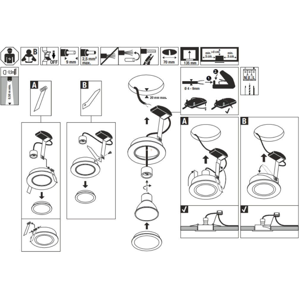 Kivágási méret: 68 mm