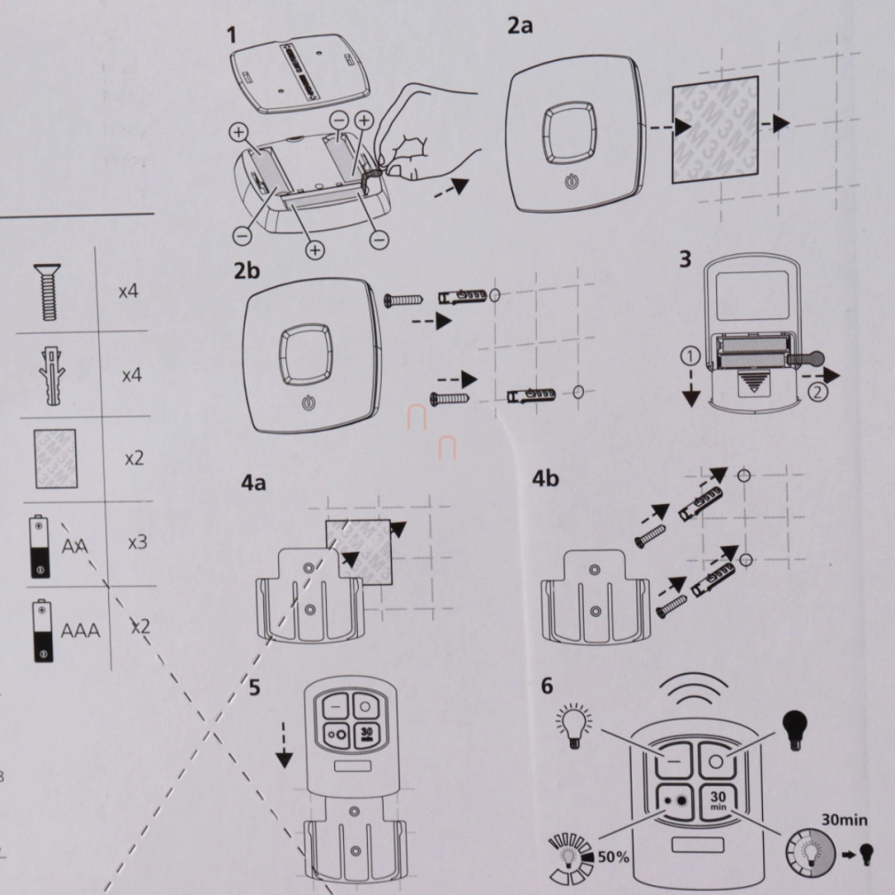 5xAAA (3xlámpa és 2xtávvezérlő) elemek.