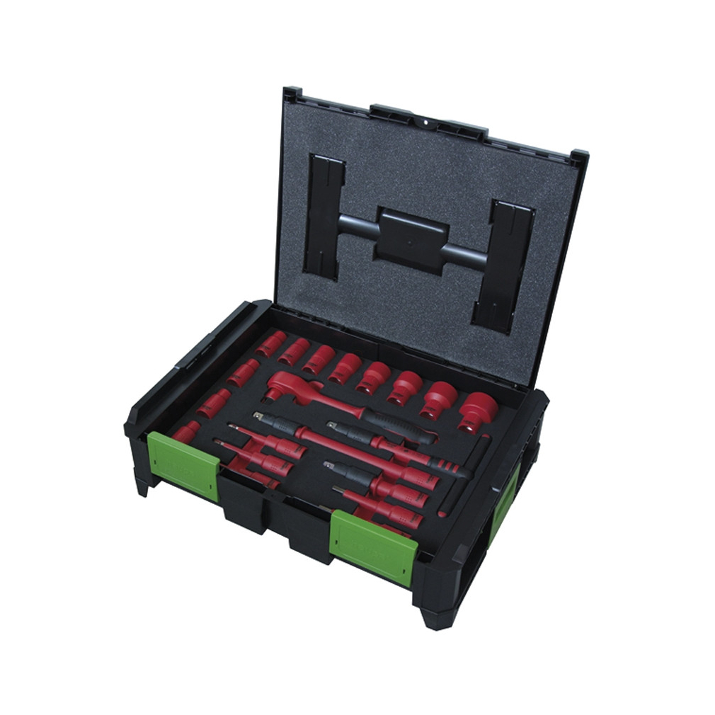 \nSysCon S „VDE-Socket“ 1/2“Műanyag koffer habanyag betéttel, 1/2“dugókulcsokkal.