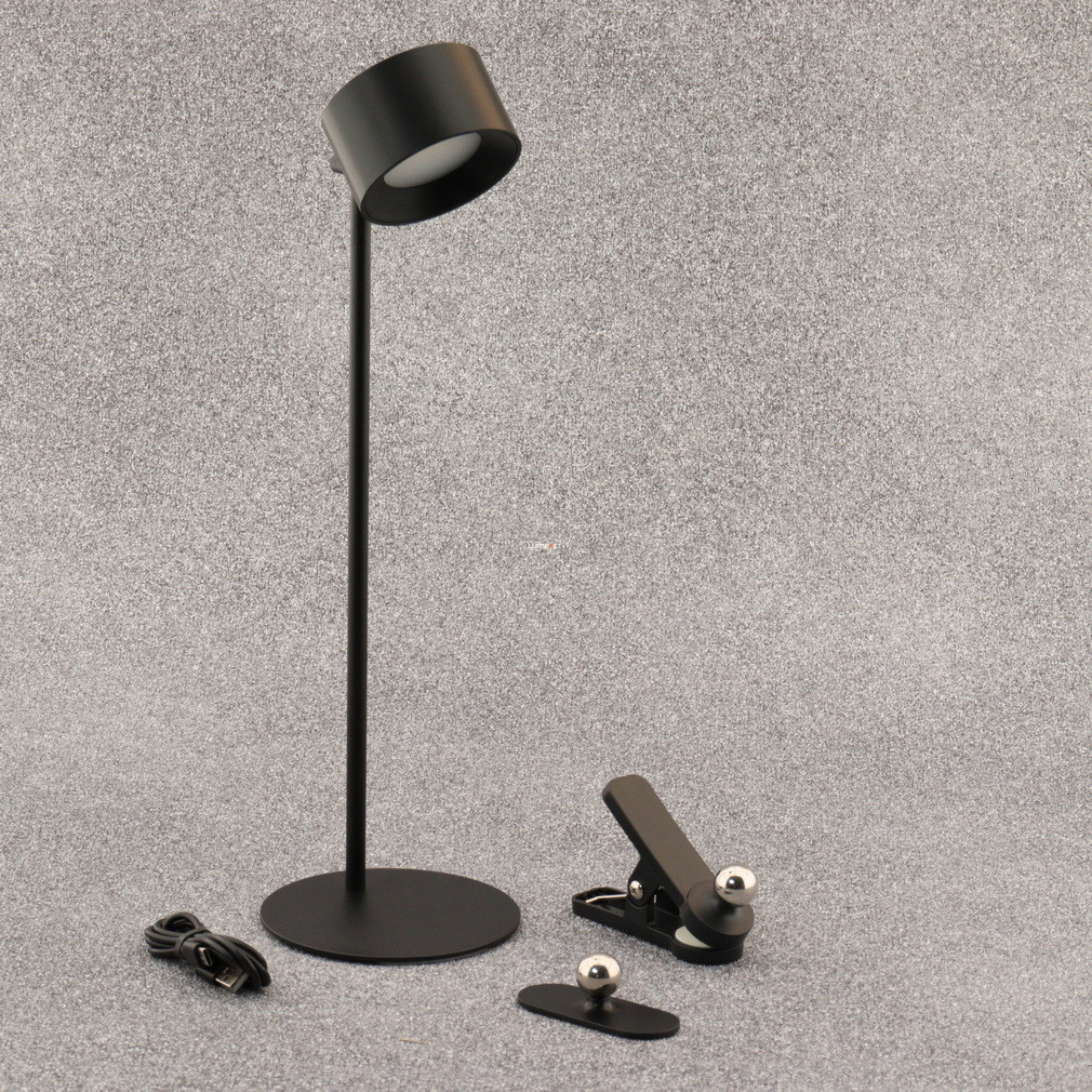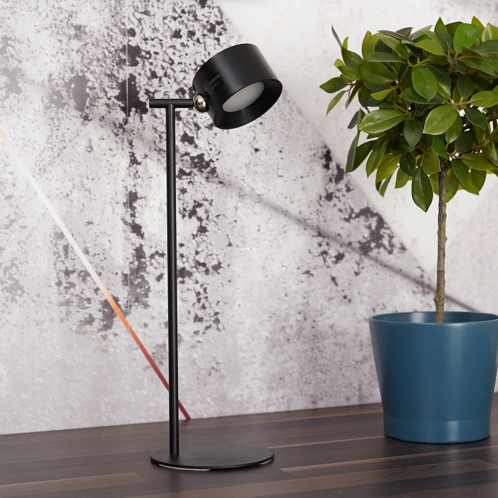 A Jorje Globo 58436B szabályozható asztali LED lámpa 35 cm magas, modern kialakítású világítótest, amely matt fekete fémházzal és beépített LED modullal rendelkezik. A lámpa fényárama 120 lumen, energiafogyasztása 4,5 W, névleges feszültsége 5 V, így USB csatlakozással is használható. A színhőmérséklet három fokozatban állítható (3000 K, 4000 K, 5000 K), változtatható fehér fényt biztosítva, a beépített memóriafunkció pedig megőrzi a beállításokat a következő használatig. A termék IP20 védettségi szinttel rendelkezik, hálózati adaptert nem tartalmaz. Kompakt méreteinek (130 mm hosszúság, 120 mm szélesség, 350 mm magasság) köszönhetően íróasztalokon, munkaállomásokon is könnyen elhelyezhető. A lámpa energiaosztálya G, a fényforrást a beépített LED modul biztosítja.