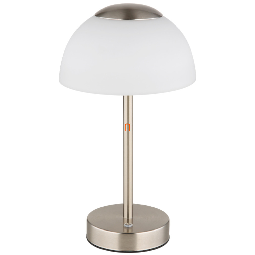 Szabályozható asztali LED lámpa ezüst színben, tölthető 31 cm - Sarima Globo 21014N, fokozatmentes dimmelés, akkumulátoros, 0.5 méretes kábellel, 2700-6500-4000 K, 150 lm, 2,5 W, 3,7 V