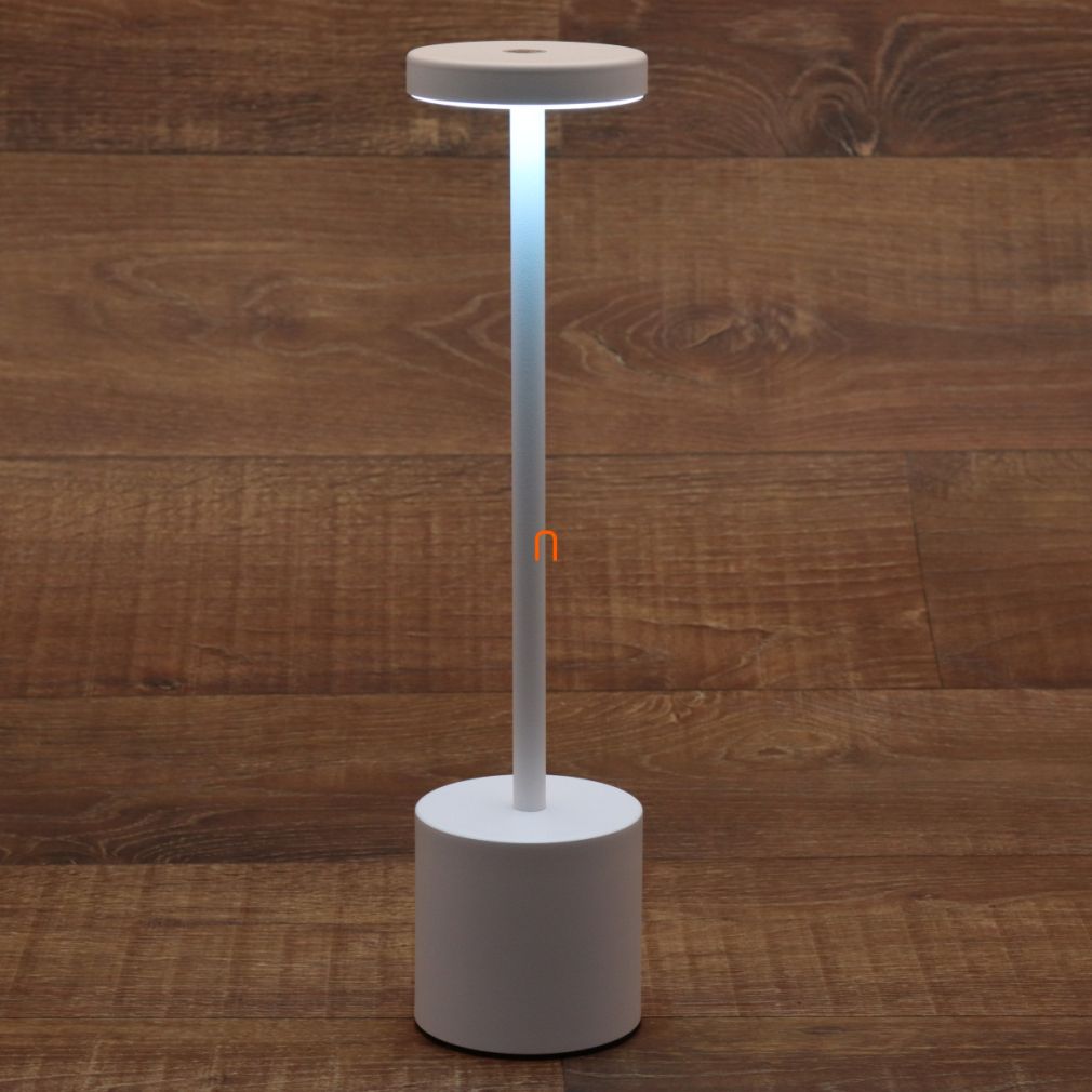 Szabályozható asztali LED lámpa fehérl színben, 34 cm - Polina Globo 21019W, akkumulátoros, tölthető, hordozható, dimmelhető, 0.8 méretes kábellel, 2000-7000-3500 K, 138 lm, 40 W, 230 V