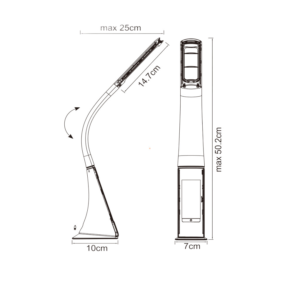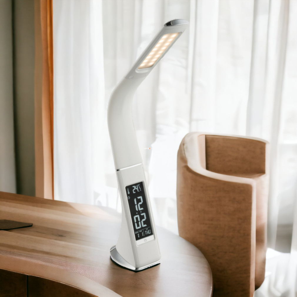 A Sophie Globo 58333 szabályozható asztali LED lámpa modern stílusával és fekete színével harmonikusan illeszkedik bármely munkakörnyezetbe vagy otthoni íróasztalra. A 6,5 wattos beépített LED modul 240 lumen fényáramot biztosít, amely háromféle színhőmérséklet között állítható: 3000 K, 4500 K és 5800 K. A változtatható fehér fény (TW) lehetővé teszi, hogy a világítás a kívánt hangulathoz vagy tevékenységhez igazodjon. A 50 cm magas lámpatest műanyagból készült, IP20 védettséggel rendelkezik, így beltéri használatra ajánlott. A kapcsolóval ellátott lámpa átlagos élettartama eléri a 35 000 órát, így hosszú távon is megbízható világítási megoldást jelent. A termék tömege 1,12 kg, méretei: 250 mm hosszúság, 70 mm szélesség és 500 mm magasság. A csomagolás méretei: 15 cm hosszúság, 7 cm szélesség, 28 cm magasság. A LED fényforrás a lámpatest részét képezi, így nincs szükség külön izzó vásárlására.