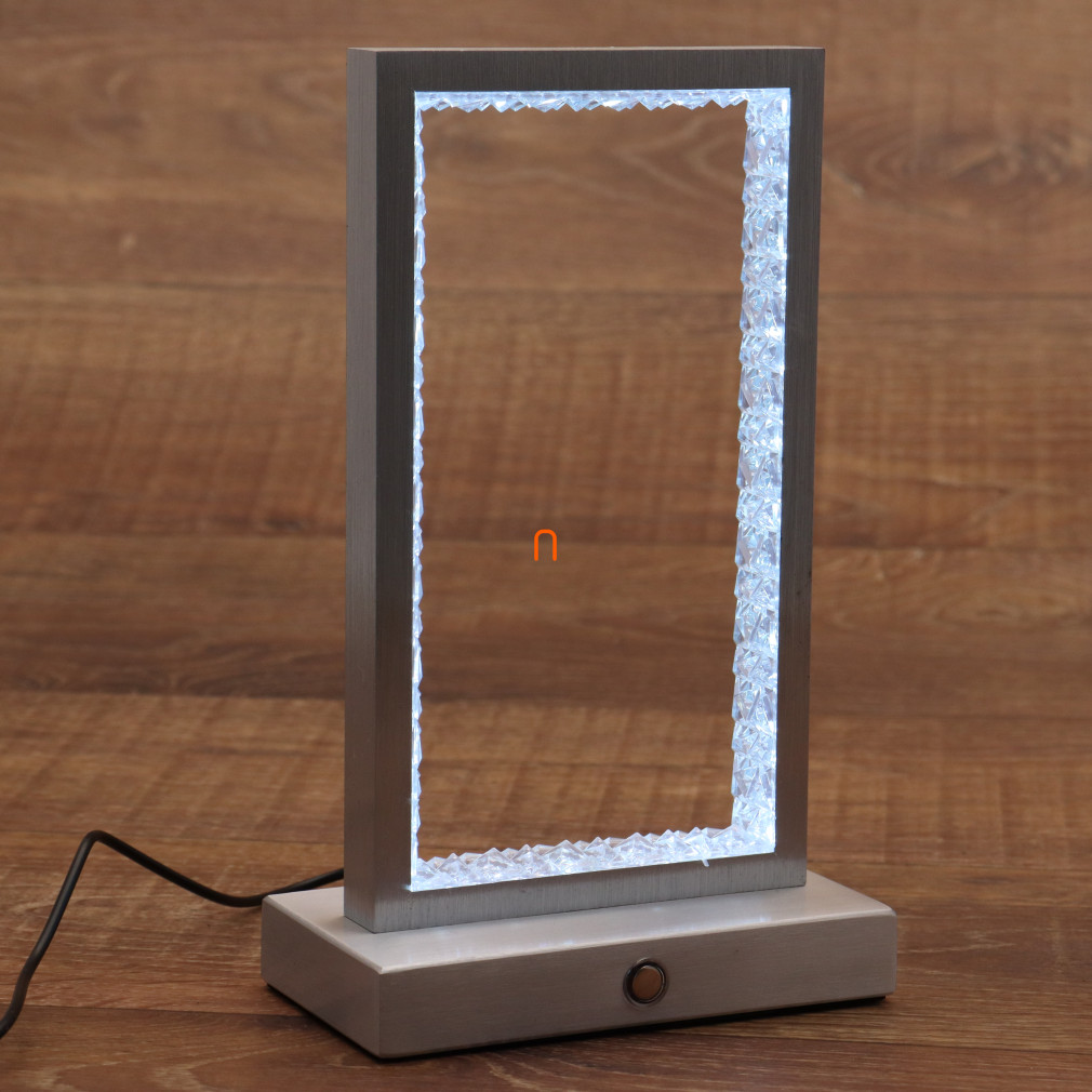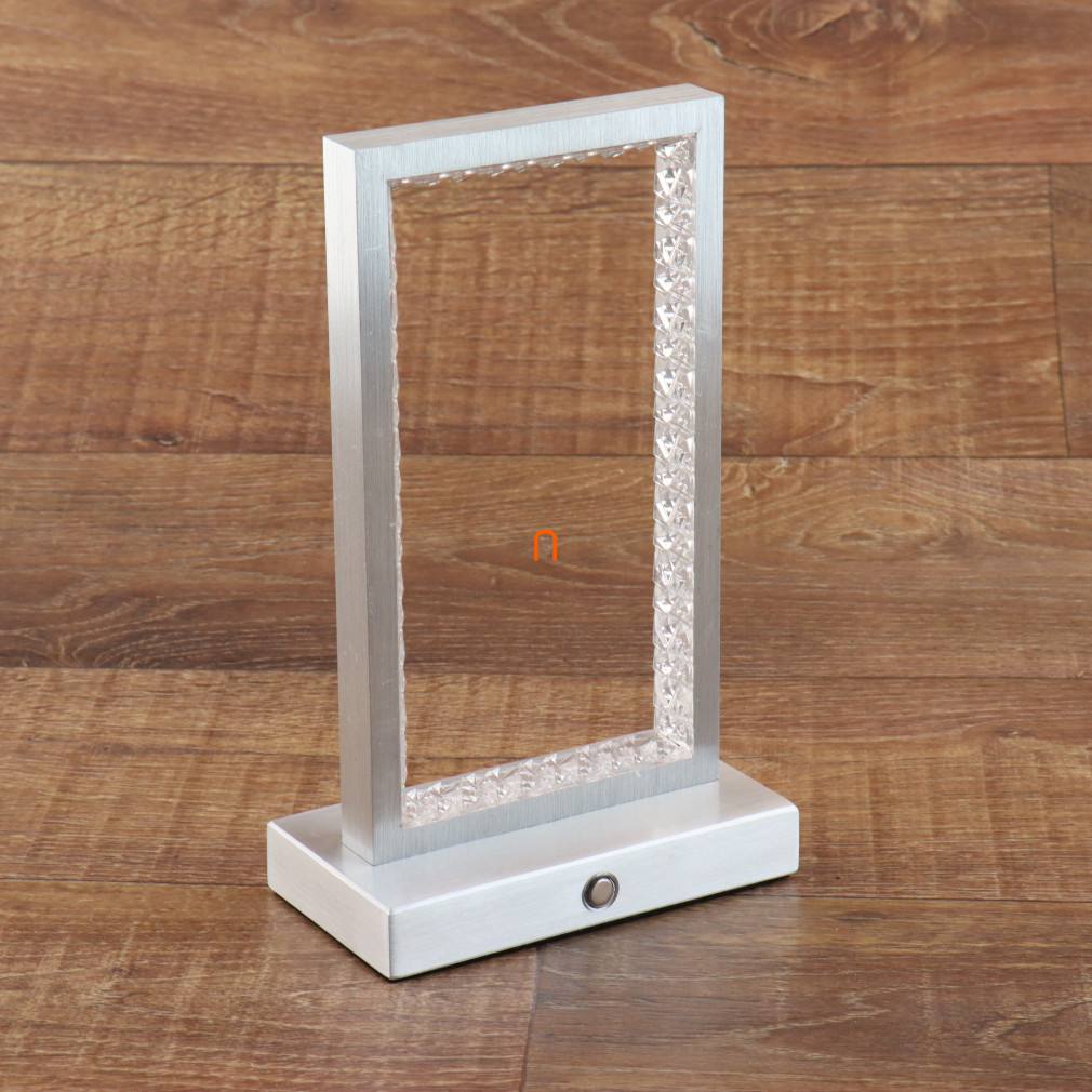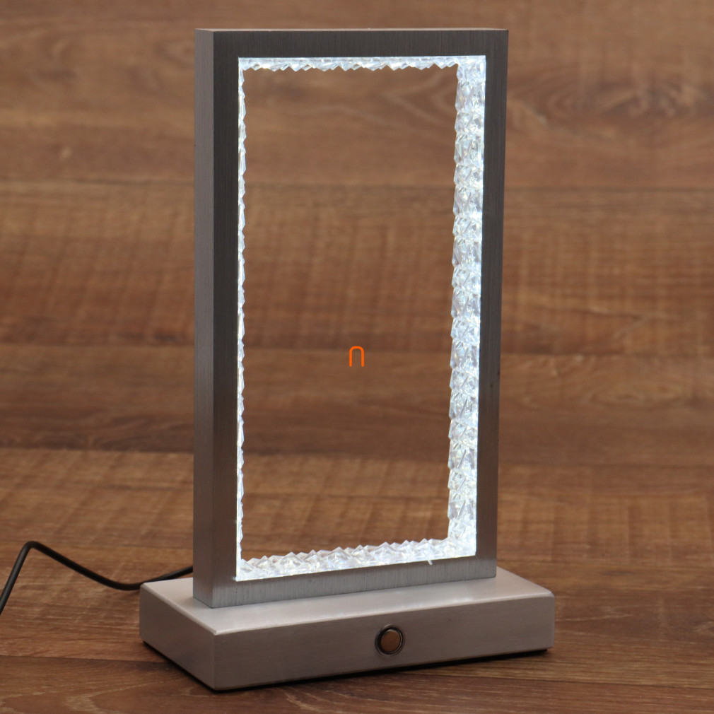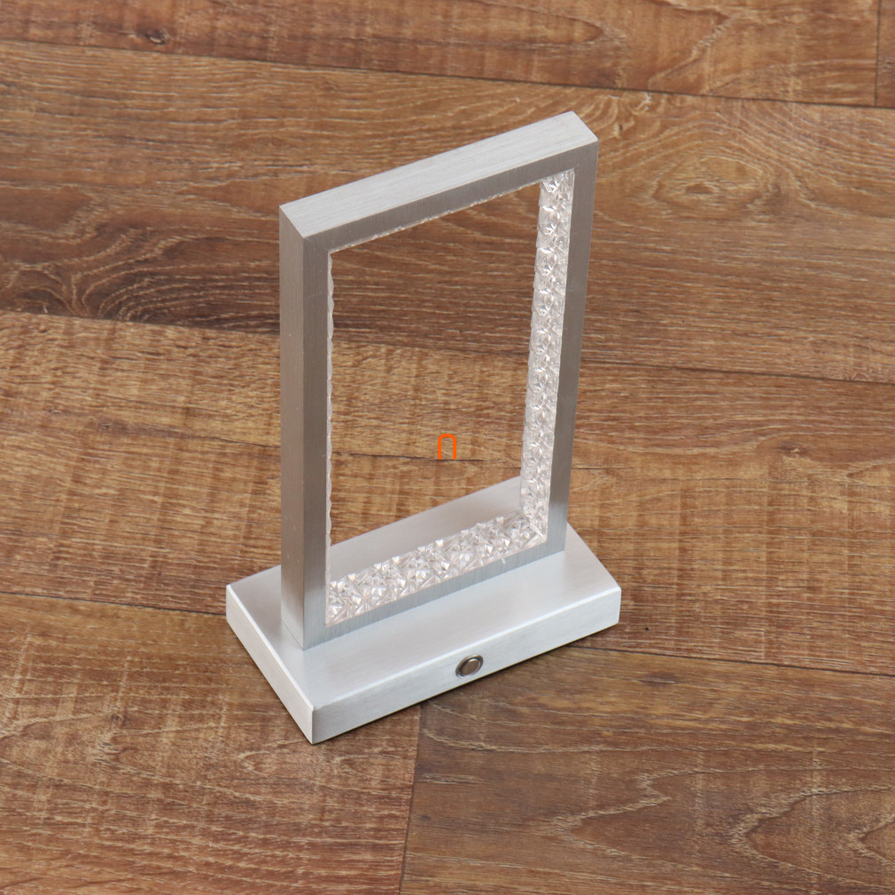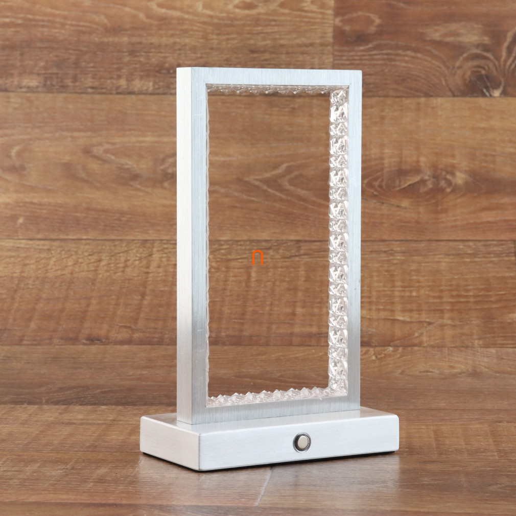 Szabályozható asztali LED lámpa kristály berakással, fehér színben 23 cm - Samega Globo 24008A, akkumulátoros, tölthető, hordozható, dimmelhető, érintőkapcsolós, 1.2 méretes kábellel, 2700-6500-4000 K, 120 lm, 3 W, 230 V