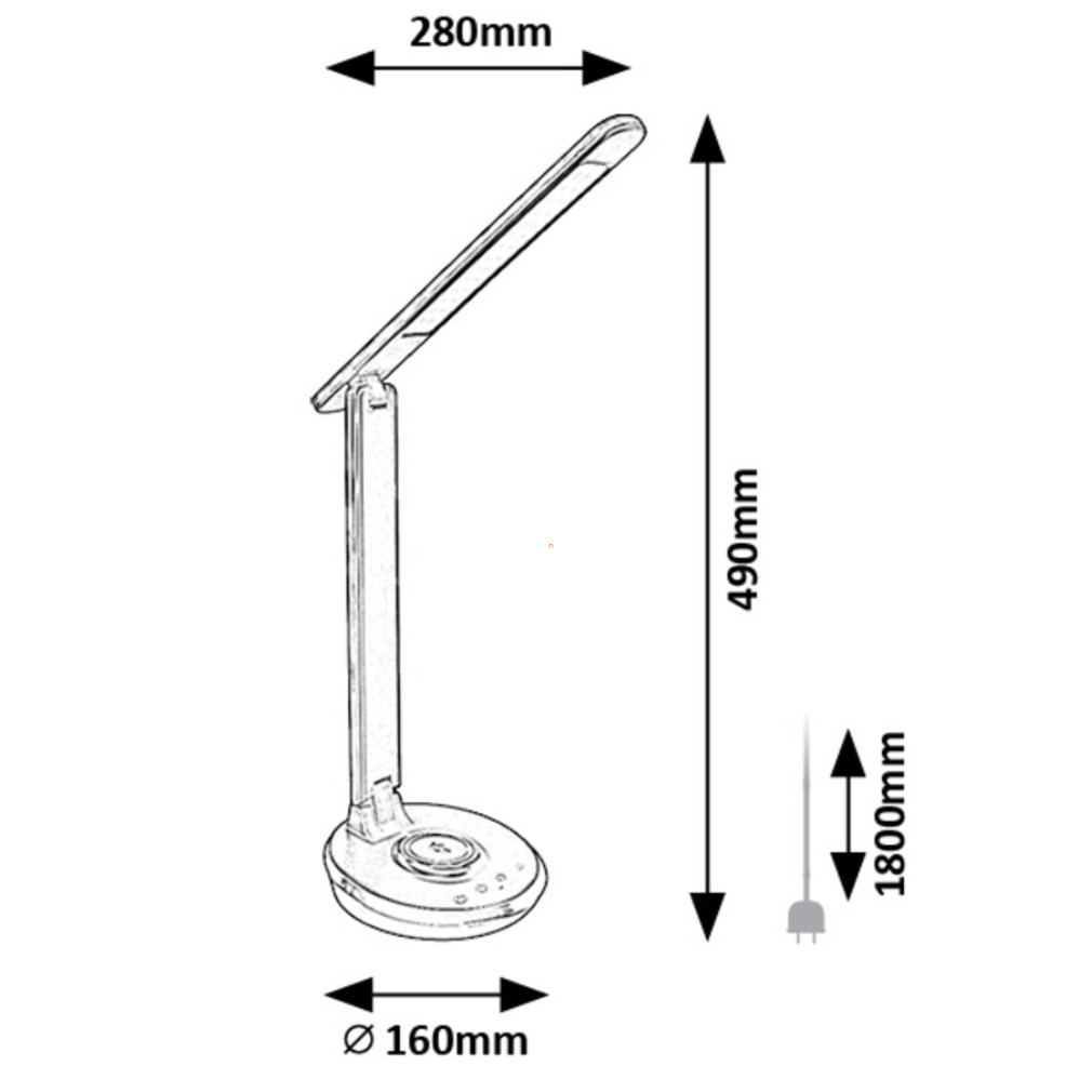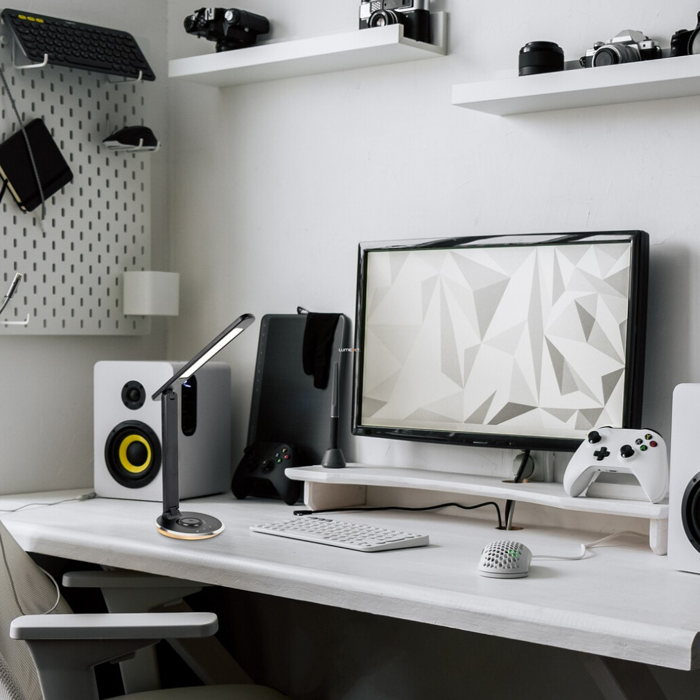 A Jacey Rábalux 74226 szabályozható asztali LED lámpa modern világítási megoldást kínál otthoni vagy irodai munkakörnyezetek számára. A beépített LED modul 6 W teljesítménnyel és 480 lumen fényárammal üzemel, miközben a színhőmérséklet három fokozatban, 3000, 4000 és 5000 Kelvin között állítható, így a fényerő és a fény színe is az igényekhez igazítható. A lámpa érintőkapcsolós vezérlése lehetővé teszi a fényerősség szabályozását, valamint memóriafunkcióval rendelkezik, amely megjegyzi a legutóbb használt beállításokat. Az eszköz különlegessége, hogy vezeték nélküli telefontöltővel is ellátták, így kompatibilis mobilkészülékek töltése egyszerűen megoldható. Az IP20 védettségű, műanyagból készült lámpatest fekete és fehér színben érhető el, átlagos élettartama eléri a 25 000 órát. A termék 12 V névleges feszültséggel működik, energiaosztálya G, méretei pedig 280 mm hosszúság, 490 mm szélesség, tömege 0,835 kg. A színes talapzat világítása tovább növeli a vizuális élményt és a funkcionalitást.