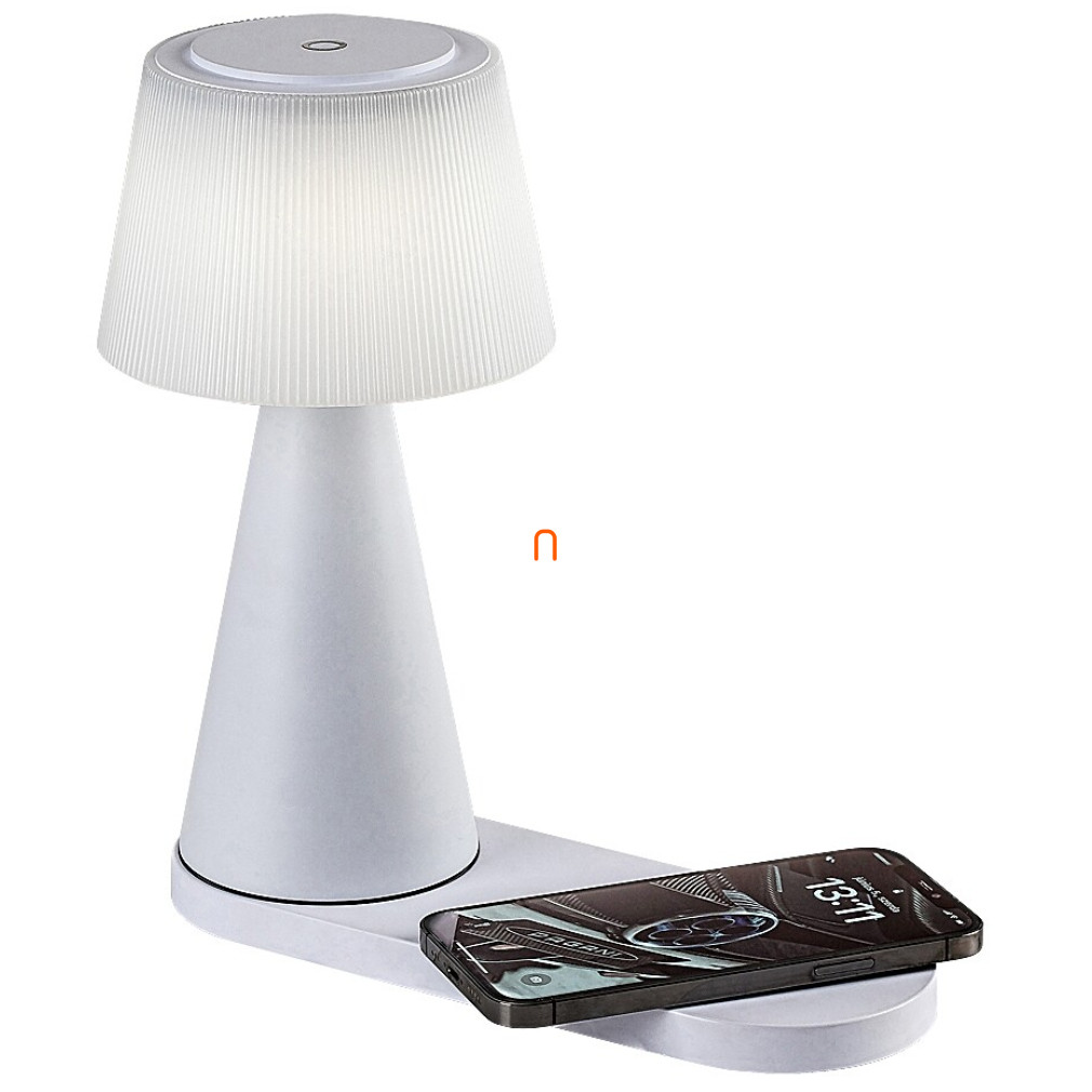 Szabályozható asztali LED lámpa telefontöltő funkcióval 26 cm - Zavier Rábalux 74214, érintőkapcsoló, Qi vezeték nélküli töltés, USB C-vel tölthető, de akkumulátorról működik, 3000-4000-5000 K, 220 lm, 5 W, 5 V