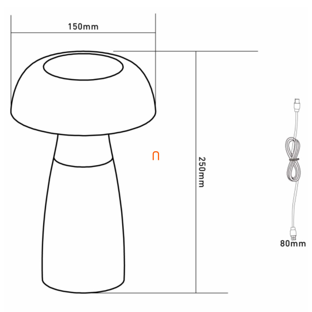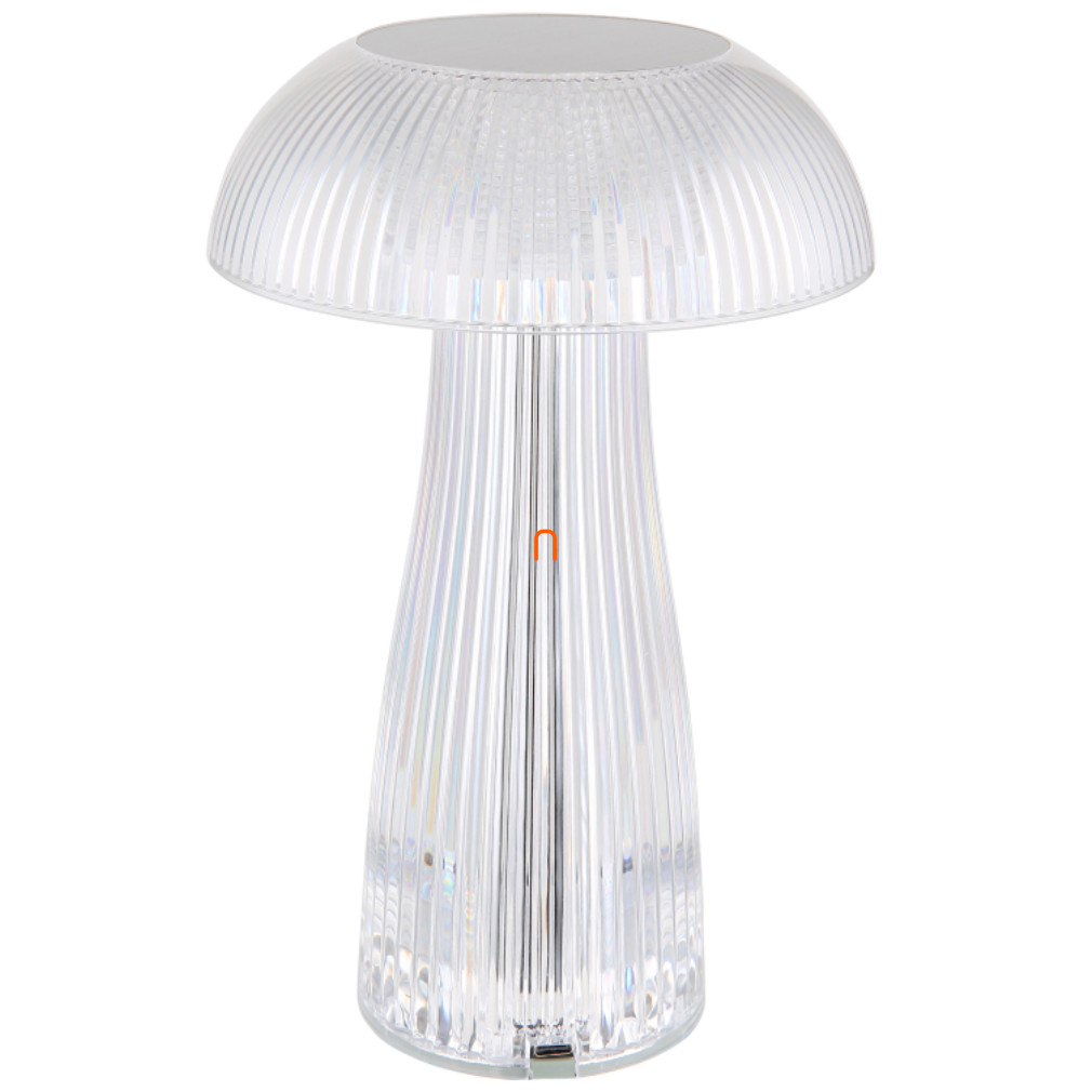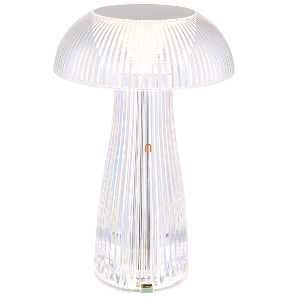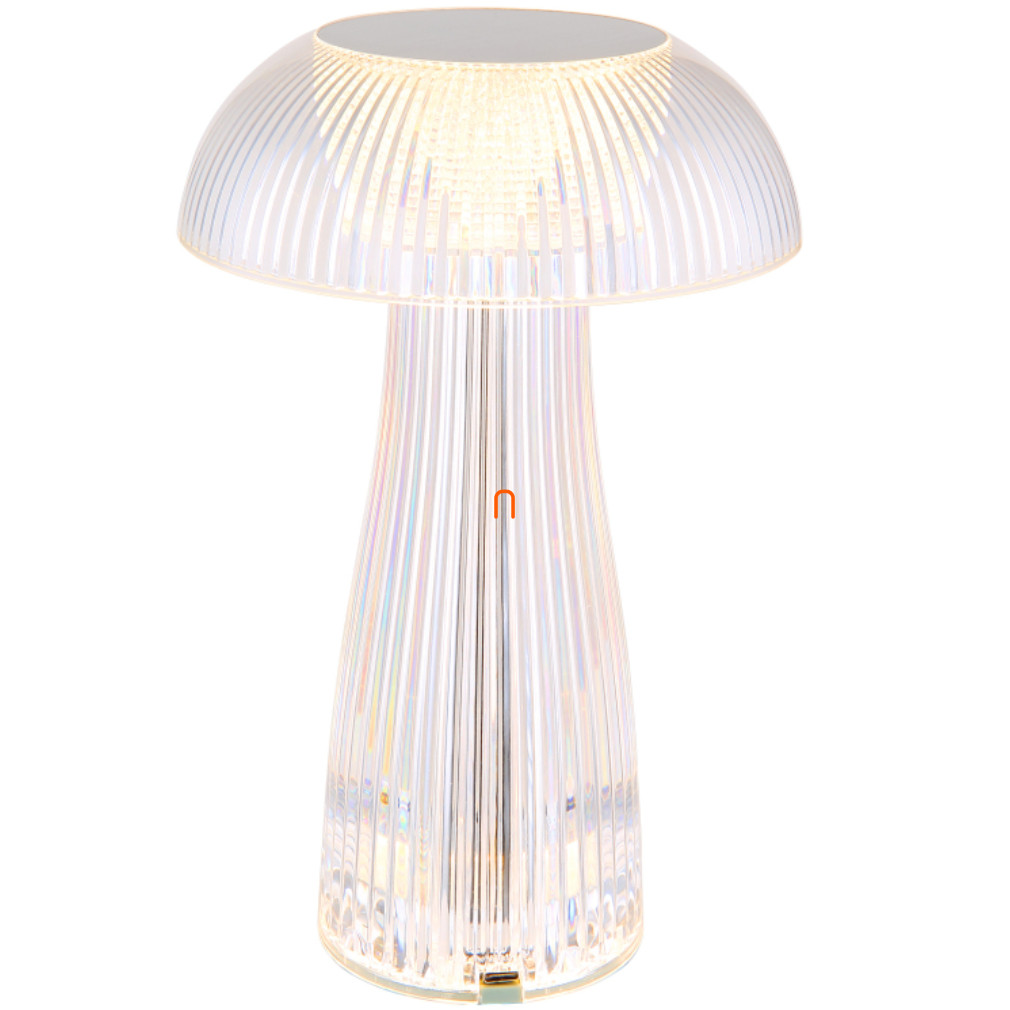 Szabályozható asztali LED lámpa, üveg hatású, tölthető 25 cm - Gixi Globo 28072, érintőkapcsolós, fokozatmentes dimmelés, barázdált felület, akkumulátoros, 0.8 méretes kábellel, 2700-6500-4000 K, 52 lm, 1,5 W, 5 V