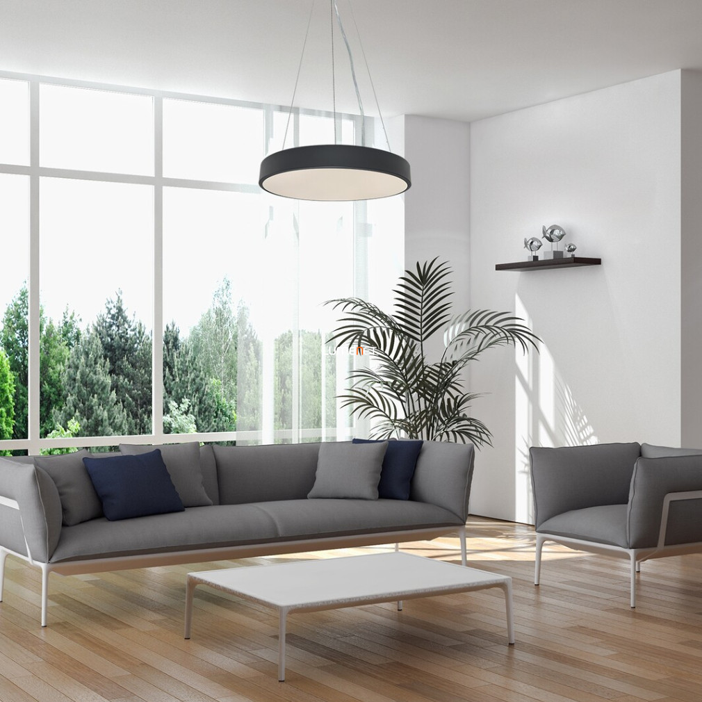 A Tesia Rábalux 71041 szabályozható függesztett LED lámpa modern, fekete színű kialakítással és 60 W teljesítményű LED modullal rendelkezik, amely 2700 lumen fényáramot biztosít. A lámpa fényének színhőmérséklete 3000 és 6000 Kelvin között változtatható, így meleg és hideg fehér fény is elérhető. A világítás intenzitása falikapcsolóval vagy a mellékelt távirányítóval szabályozható, továbbá memória, időzítő és éjjeli fény funkcióval is ellátták. A 600 mm átmérőjű lámpatest fém és műanyag anyagból készült, IP20 védettséggel rendelkezik, és átlagos élettartama eléri az 50 000 órát. A termék tartalmazza a beépített LED fényforrást, így azonnal használatra kész.