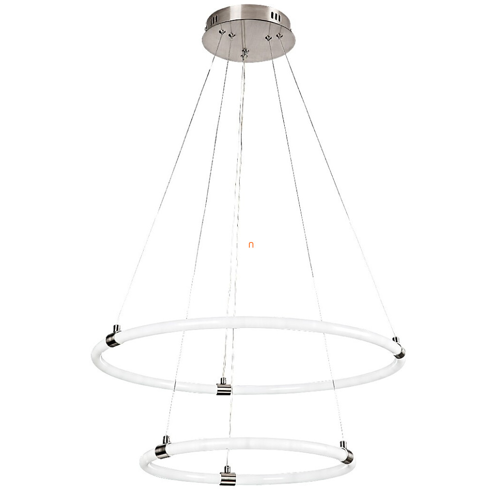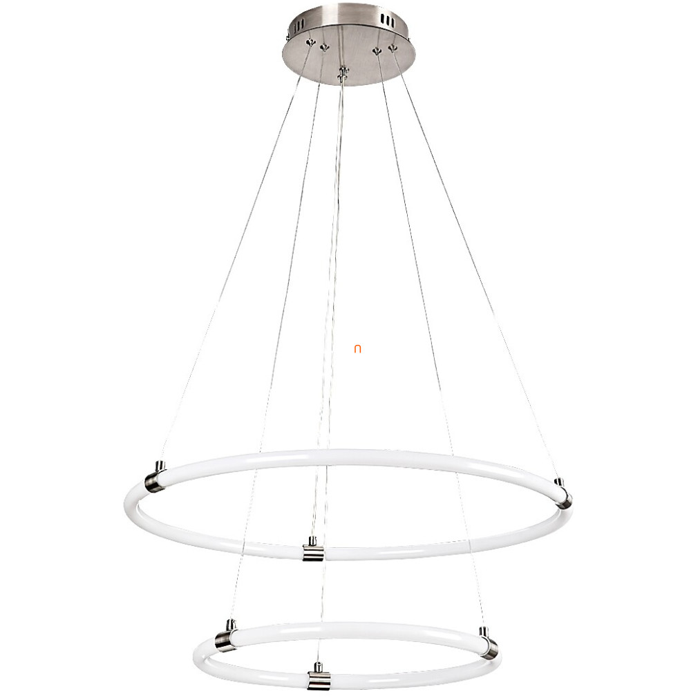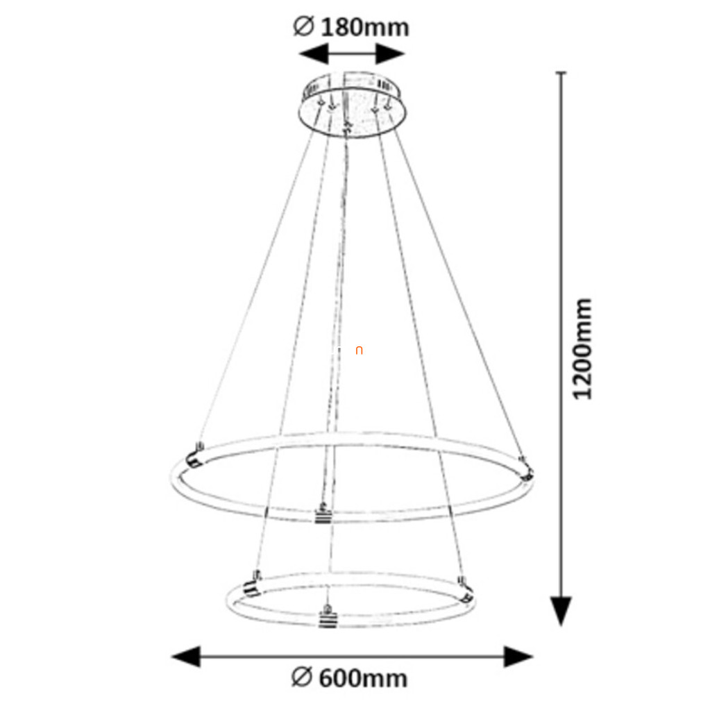 Az Irelia Rábalux 72009 szabályozható függesztett LED lámpa modern, minimál stílusú kialakításával és fejlett világítási technológiájával emeli a lakásvilágítás színvonalát. A lámpatest 55 W teljesítményű integrált LED modullal rendelkezik, amely 4700 lumen fényáramot biztosít, így nagyobb helyiségek egyenletes és erőteljes megvilágítására alkalmas. A fény színe változtatható fehér (TW), 3000, 4000 vagy 6000 Kelvin színhőmérséklettel, amely a mellékelt távirányítóval vagy kapcsolóval könnyedén szabályozható. Az éjjeli fény, memória és időzítő funkciók további kényelmet nyújtanak a mindennapi használat során. A lámpa fém és műanyag anyaghasználata, valamint ezüst-fehér színkombinációja modern megjelenést kölcsönöz, miközben a 15000 órás átlagos élettartam hosszú távú megbízhatóságot garantál. A 600 mm átmérőjű és 1200 mm magasságú lámpatest IP20 védettséggel rendelkezik, így beltéri használatra ideális. A termék csomagolási méretei: 67 x 10 x 67 cm, tömege 2,09 kg.