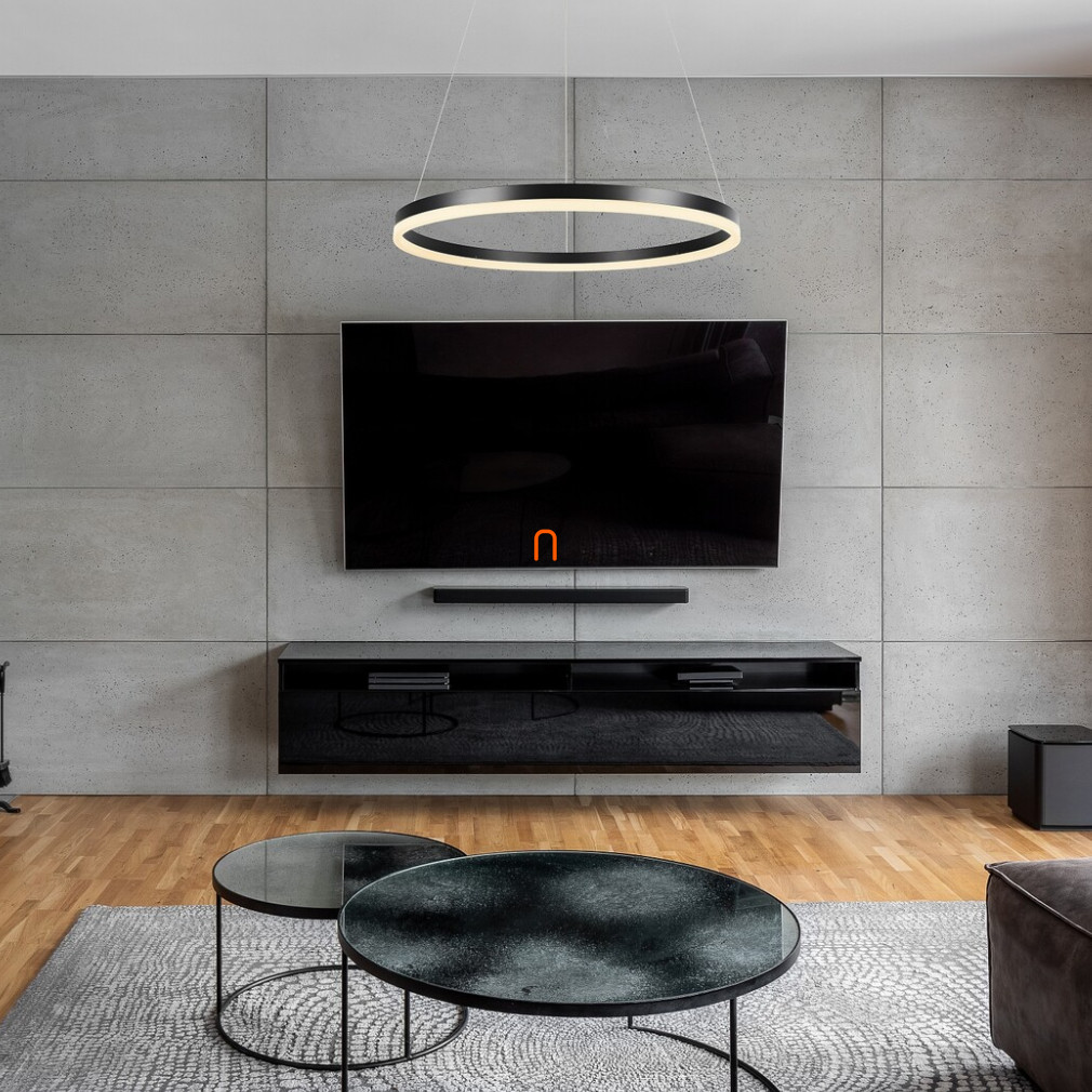 A Szabályozható függesztett LED lámpa minimál stílusban, 60 cm - Isaure Rábalux 72301 egy modern, letisztult kialakítású világítótest, amelyet 35 W teljesítményű, beépített LED modul működtet. A lámpatest 2200 lumen fényáramot biztosít, a fény színhőmérséklete pedig DIP kapcsolóval állítható 3000 K, 4000 K és 6500 K értékek között, így igény szerint választható meleg, természetes vagy hideg fehér fény. A termék anyaga fém és akril, színei fekete és fehér, ami jól illeszkedik minimál enteriőrökbe. A lámpa 60 cm széles, magassága 130 cm, névleges feszültsége 230 V, energiaosztálya G. Átlagos élettartama 25 000 óra, védettségi szintje IP20, a fényforrás cseréjét nem igényli. A logisztikai kód 72301, gyártója a Rábalux.