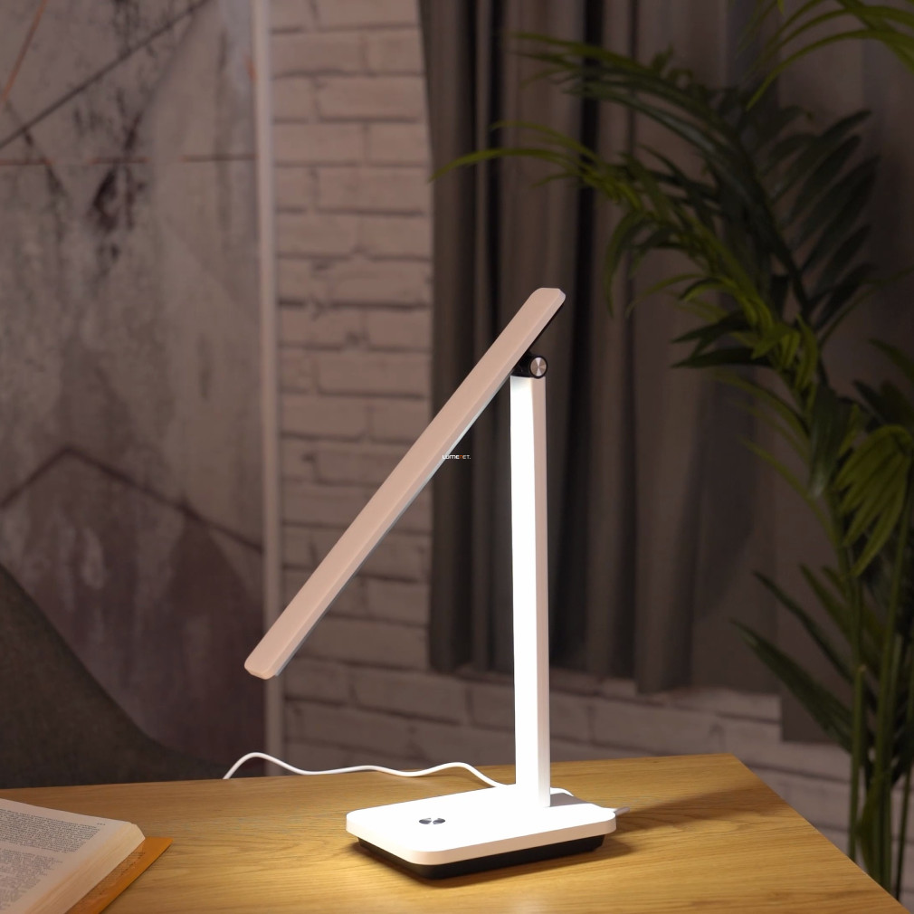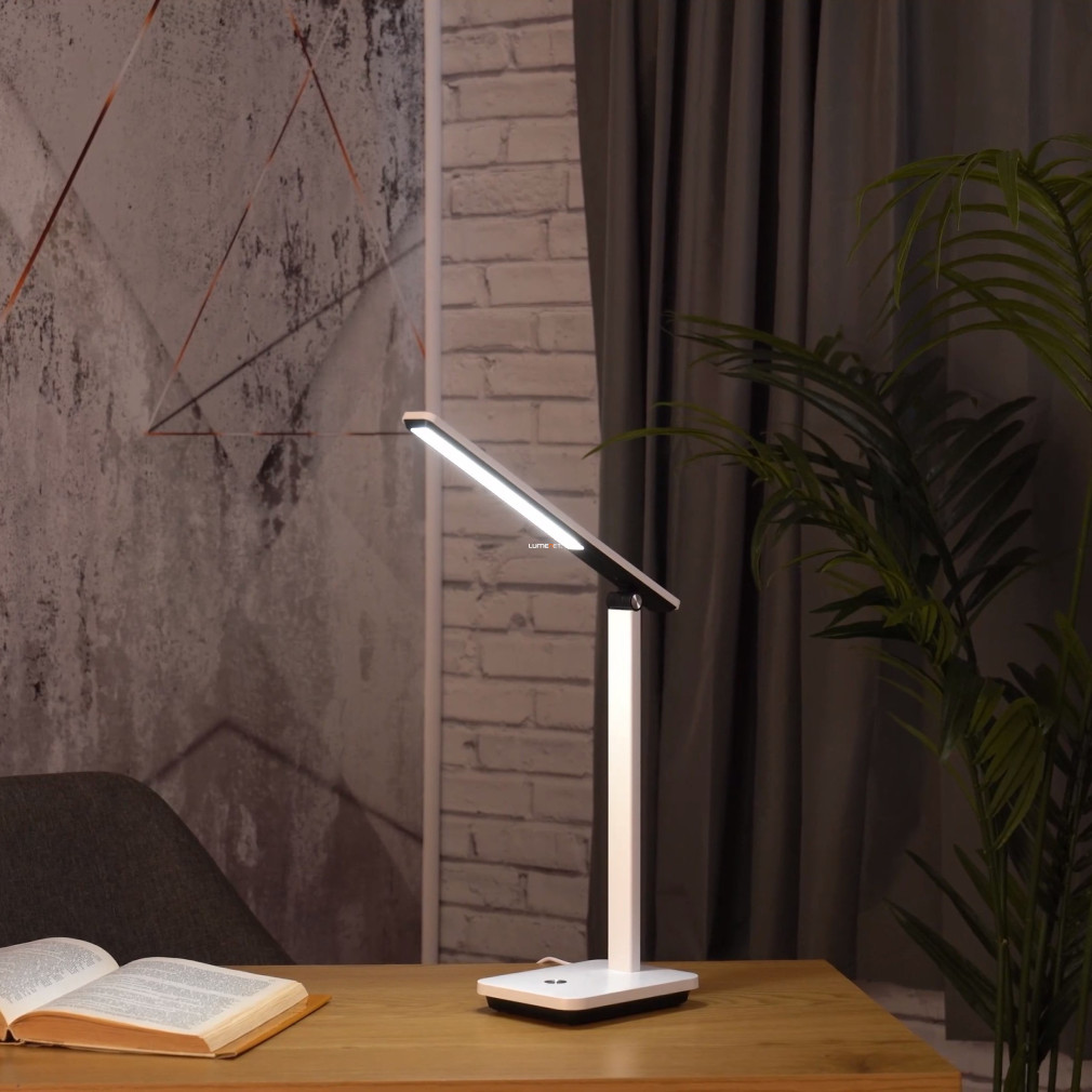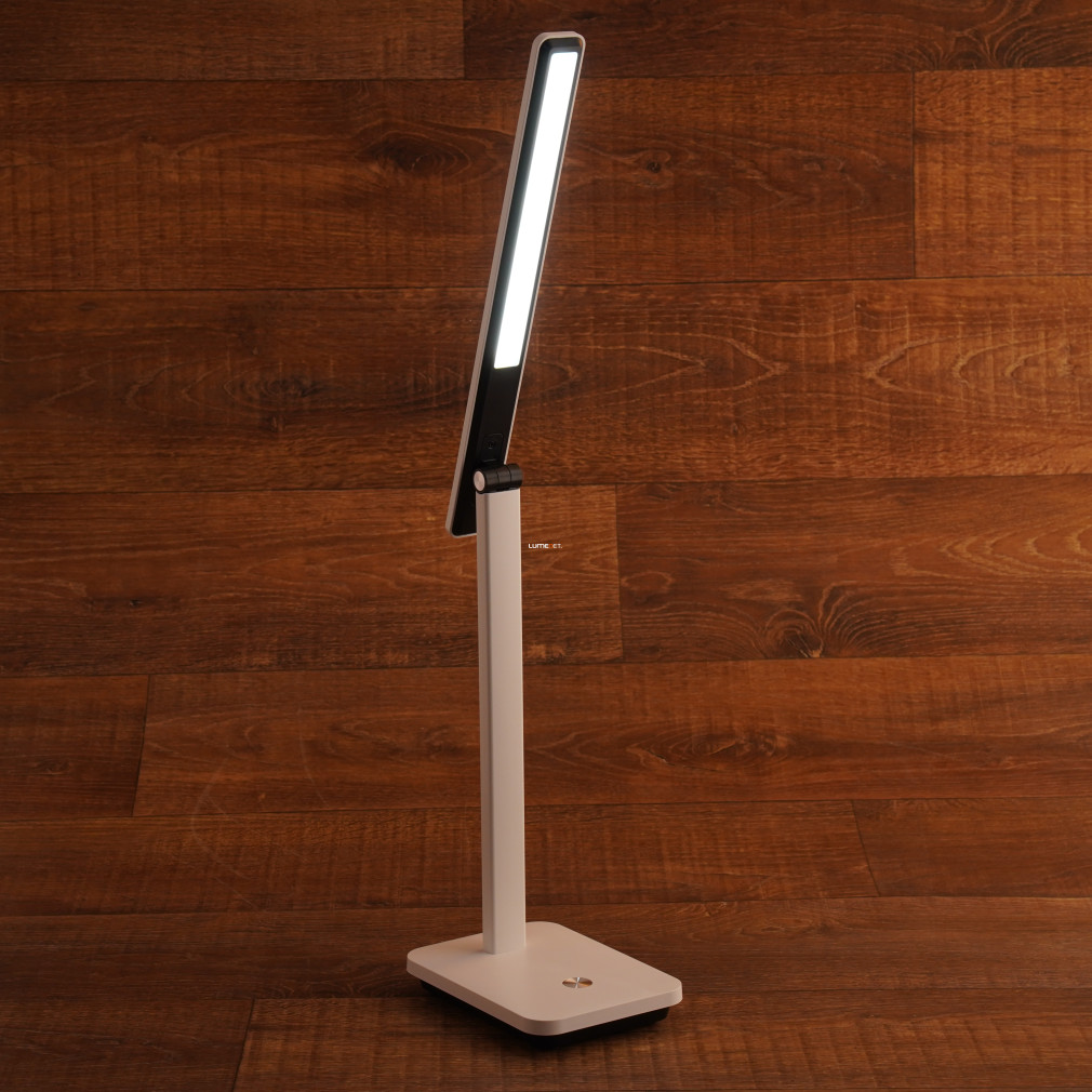 Az Iniesta Eglo 900956 szabályozható íróasztali LED lámpa korszerű világítási megoldást kínál, amely USB csatlakozással rendelkezik. A lámpa 35 cm hosszú fényforrással, 3,6 W teljesítményű LED modullal és 360 lumen fényárammal működik. A fény színhőmérséklete 3000 és 6500 Kelvin között állítható, így a világítás meleg fehértől egészen a hideg fehérig három lépésben szabályozható. A lámpatest anyaga tartós műanyag, színe fehér és fekete kombináció. Az eszköz IP20 védettségű, beépített LED modult tartalmaz, a tápegység nem tartozék, a csomag USB kábelt tartalmaz. Kompakt méreteinek köszönhetően (330 mm hosszúság, 35 mm szélesség, 350 mm magasság) ideális íróasztali használatra. A terméket az EGLO gyártja.