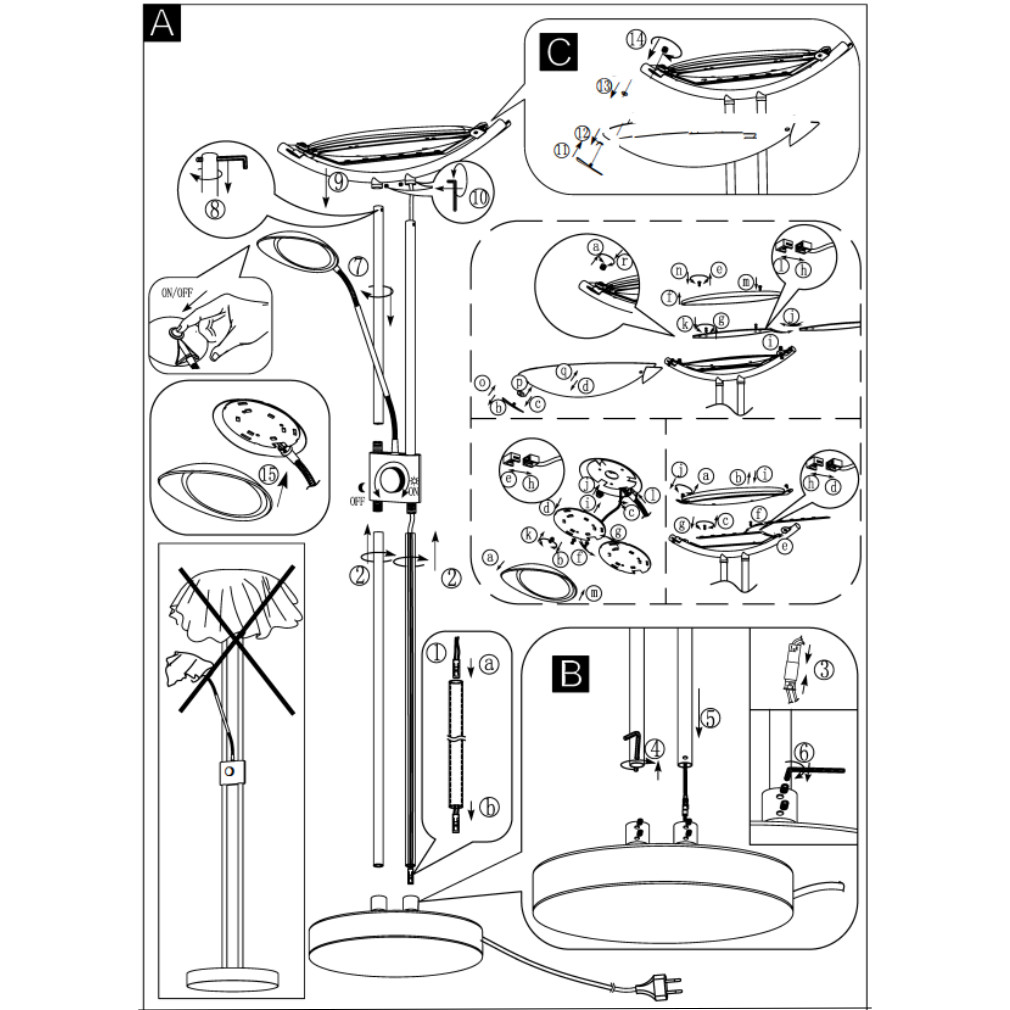 Szabályozható LED állólámpa, 180 cm, ezüstszínű - Baya Eglo 93874, fényerőszabályzó kapcsoló, 3000 K, 2200 lm, 22,5 W