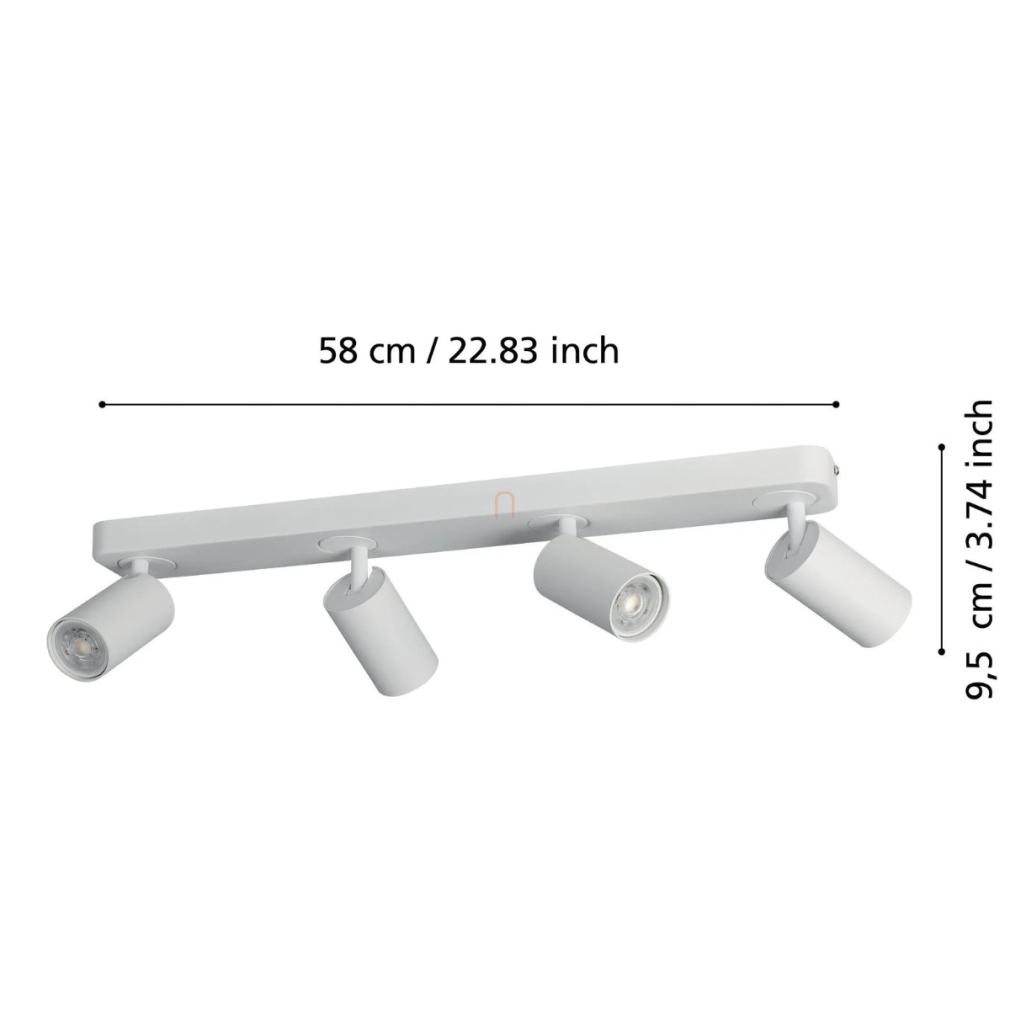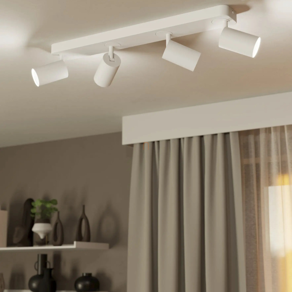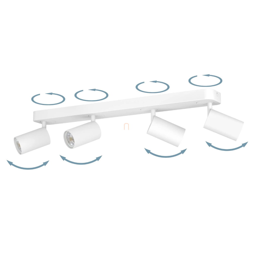 A Telimbela RGBW Eglo 900339 szabályozható LED spot lámpa modern mennyezeti világítási megoldás, amely 19,6 watt teljesítményű LED modullal működik, és négy darab GU10 foglalattal rendelkezik. A lámpatest fehér színű acélból készült, letisztult formavilága a kortárs enteriőrökbe illeszkedik. A fényforrás cserélhető, a fényáram és a színhőmérséklet 2700 és 6500 Kelvin között szabályozható, így hideg- és melegfehér, valamint RGBW színek is elérhetők. A világítás applikációval és távirányítóval vezérelhető, amely nem tartozék. A lámpa IP20 védettséggel rendelkezik, beltéri használatra készült. Méretei: 580 mm hosszú, 80 mm széles, 97 mm magas, tömege 1,23 kg. A fényforrásokat a csomag tartalmazza.