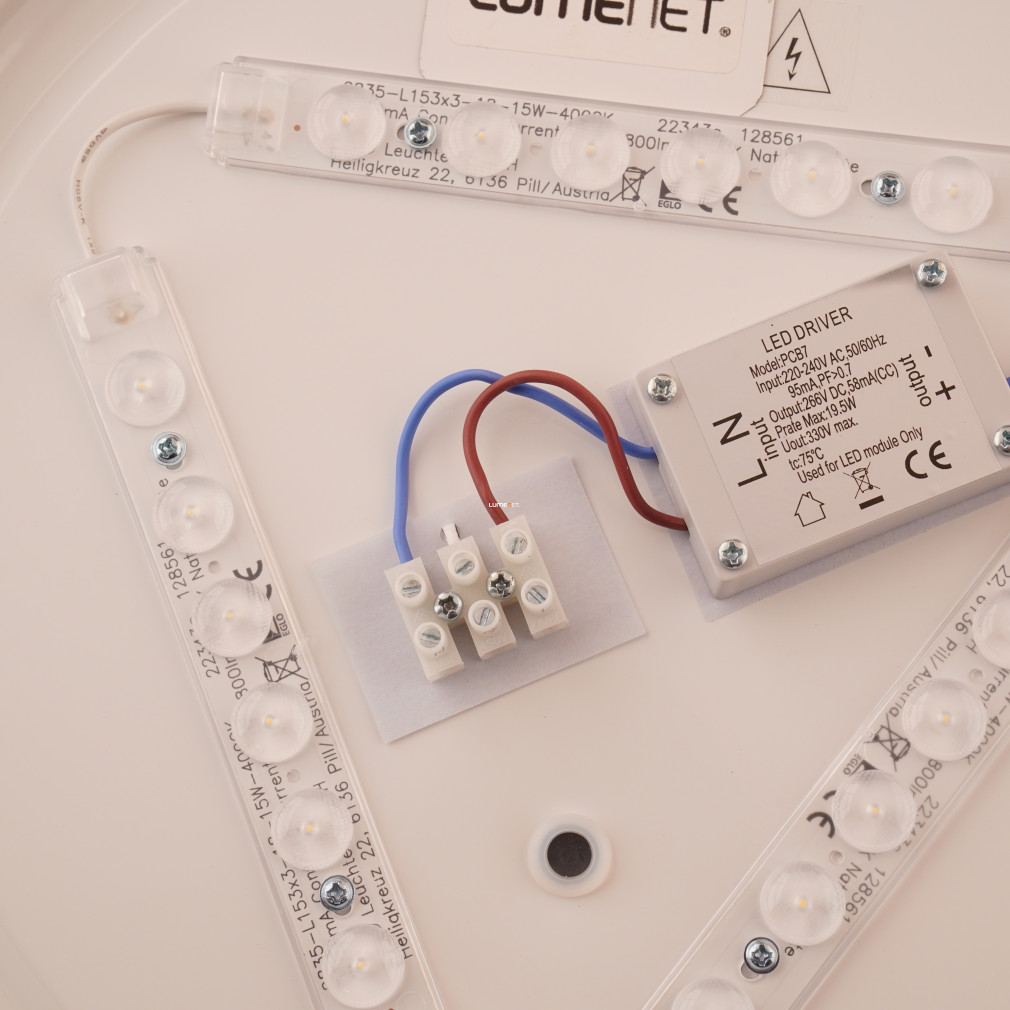 A Marunella Eglo 75438 szabályozható mennyezeti LED lámpa 18 W teljesítménnyel, integrált LED modullal és 2000 lumen fényárammal rendelkezik. A lámpatest hidegfehér, 4000 K színhőmérsékletű fényt biztosít, amely falikapcsolóval szabályozható. A lámpa acél és műanyag anyaghasználattal, fekete-fehér színkombinációban készül. A termék 340 mm hosszúságú és szélességű, magassága 65 mm, tömege 0,65 kg. IP20 védettségi szinttel rendelkezik, így beltéri használatra alkalmas. A lámpa energiatakarékos LED technológiát alkalmaz, a fényforrás nem cserélhető, mivel az integrált LED modul a világítótest része. A csomagolás méretei: 42 cm hosszú, 42 cm magas és 8 cm széles. A terméket az EGLO gyártja.