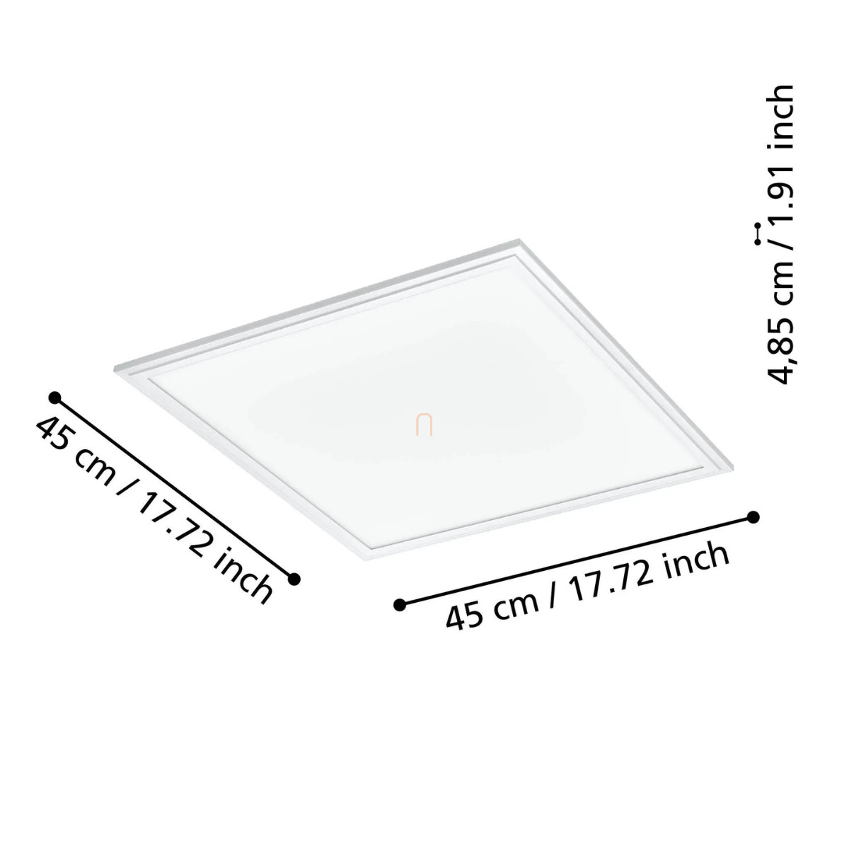A Salobrena Eglo 900045 egy 21,5 wattos, fehér színű mennyezeti LED lámpa, amely változtatható fehér fényű LED modullal rendelkezik. A lámpatest fényárama eléri a 2500 lument, színhőmérséklete 2700 és 6500 Kelvin között szabályozható, így hideg és melegfehér fény egyaránt beállítható. A fényerő és a színhőmérséklet applikációval vagy opcionális távirányítóval vezérelhető. A lámpa 450 mm hosszúságú és szélességű, magassága 50 mm. IP20-as védettségével beltéri használatra alkalmas. A termék alumíniumból és műanyagból készült, a fényforrás beépített LED modul. A gyártó az EGLO, a logisztikai kód: 900045, tömege 2,39 kg.