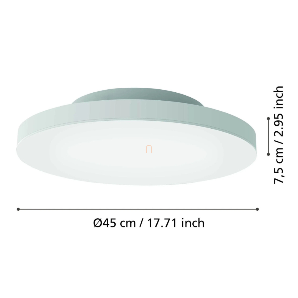 A Turcona RGBW Eglo 900055 szabályozható mennyezeti LED lámpa 22,4 W teljesítményű LED modullal rendelkezik, amely 2490 lumen fényáramot biztosít. A lámpa színhőmérséklete 2700 és 6500 Kelvin között állítható, lehetővé téve a hideg- és melegfehér, valamint RGBW színek közötti váltást. A világítás applikációval és távirányítóval szabályozható, amelyek nem tartozékai a csomagnak. A lámpatest modern stílusú, fehér színű, acél és műanyag anyagból készült. Az eszköz átmérője 450 mm, magassága 75 mm, védettsége IP20, energiaosztálya F. A termék LED fényforrást tartalmaz, foglalata LED modul. Gyártója az EGLO.
