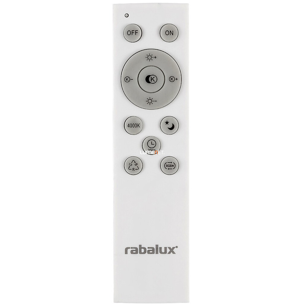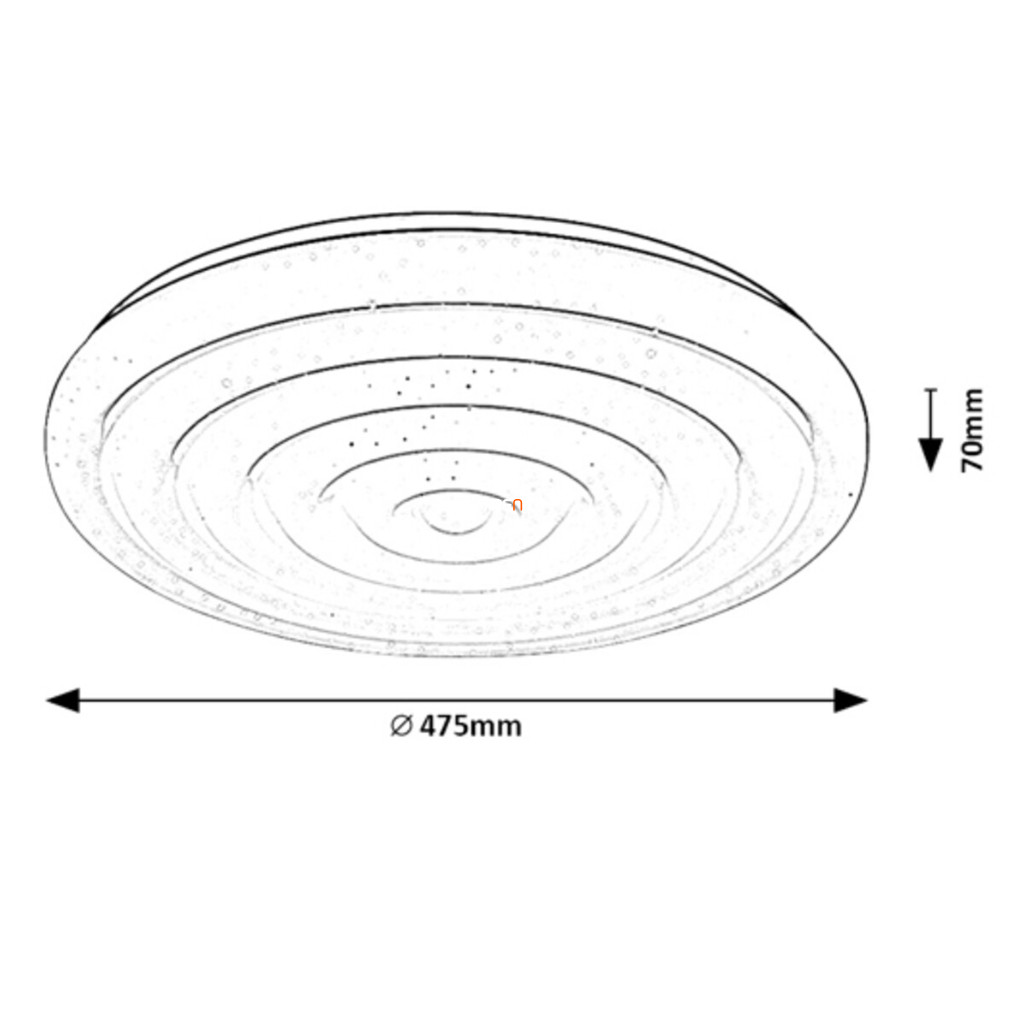 A Katina Rábalux 71018 szabályozható mennyezeti LED lámpa modern világítási megoldást kínál 47,5 cm-es átmérővel és 36 W-os teljesítménnyel. A beépített LED modul 3070 lumen fényáramot biztosít, a fény színhőmérséklete széles tartományban, 3000 és 6500 Kelvin között változtatható, így a kívánt hangulat egyszerűen beállítható. A lámpa távirányítóval vezérelhető, amely lehetővé teszi a fényerő szabályozását, továbbá éjjeli fény, memória és időzítő funkcióval is rendelkezik. A csillám hatású fehér burkolatot fém és műanyag anyagok kombinációja alkotja, amely hosszú, akár 50 000 órás élettartamot biztosít. Az IP20 védettségű lámpatest beltéri használatra készült, a csomagolás méretei 52x52x8 cm, tömege 1,79 kg. A termék a Rábalux gyártásában készült.