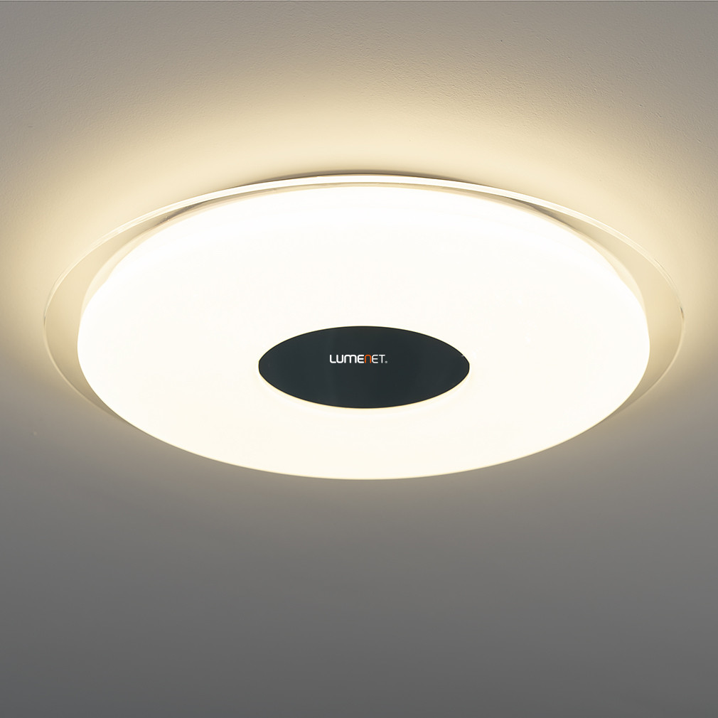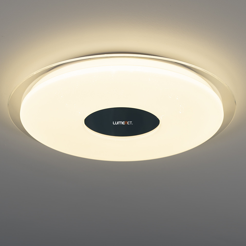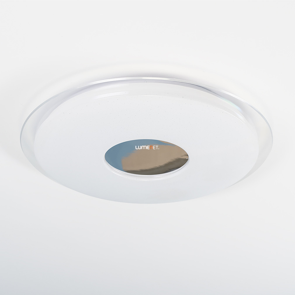 A Lanciano-Z Eglo 900005 szabályozható mennyezeti LED lámpa modern lakásvilágítási megoldást kínál, amely egyesíti a csillám hatású dizájnt a fejlett világítástechnológiával. A lámpatest 4x11,2 W teljesítményű, integrált LED modulokkal rendelkezik, amelyek maximális fényárama 4960 lumen. A fény színhőmérséklete 2700 és 6500 Kelvin között változtatható, így meleg vagy hideg fehér fényt is biztosít a felhasználó igényei szerint. A fényerő és a színhőmérséklet szabályozása applikáción vagy opcionális távirányítón keresztül történik. A lámpatest fehér és króm színű acél és műanyag anyagból készült, átmérője 560 mm, magassága 80 mm. A termék IP20-as védettséggel rendelkezik, így beltéri használatra alkalmas. Az Eglo által gyártott mennyezeti lámpa modern technológiát és elegáns megjelenést ötvöz, miközben energiatakarékos LED fényforrást tartalmaz.