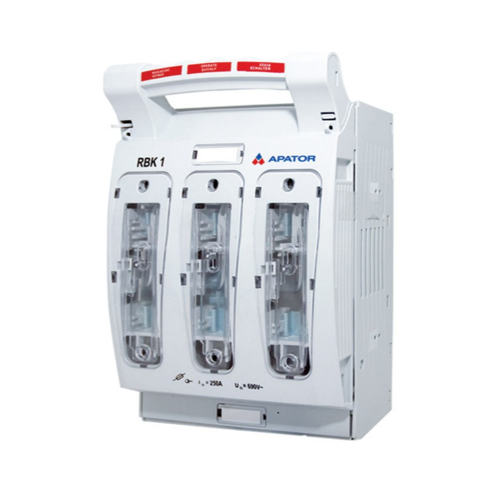 Szakaszoló biztosíték vízszintes 1-250A, szerelőlapra, S/M csatlakozás APATOR RBK 1, 63-811779-011