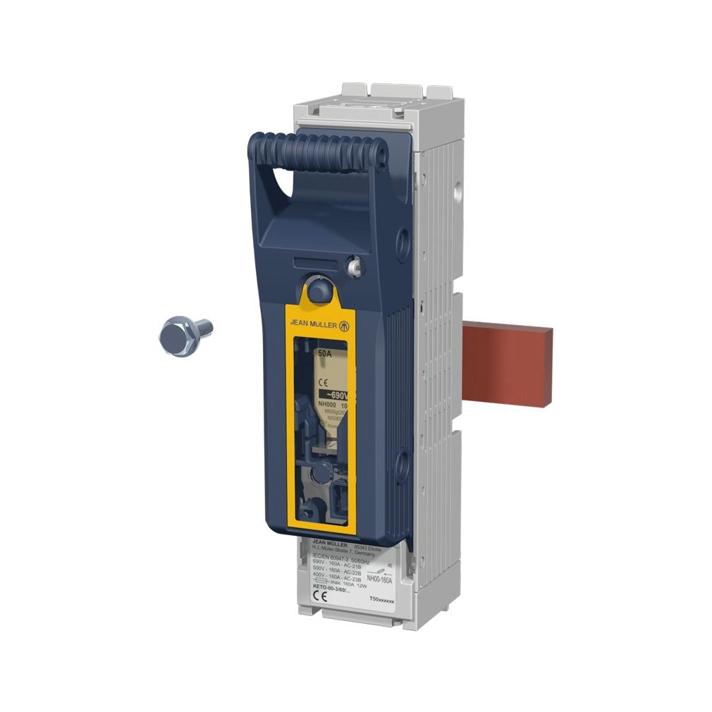 Szakaszolókapcsoló-biztosító, gyűjtősínre, lapos csatlakozó 160A, 1P, NH00 KETO-00-1/AOU/F Tracon