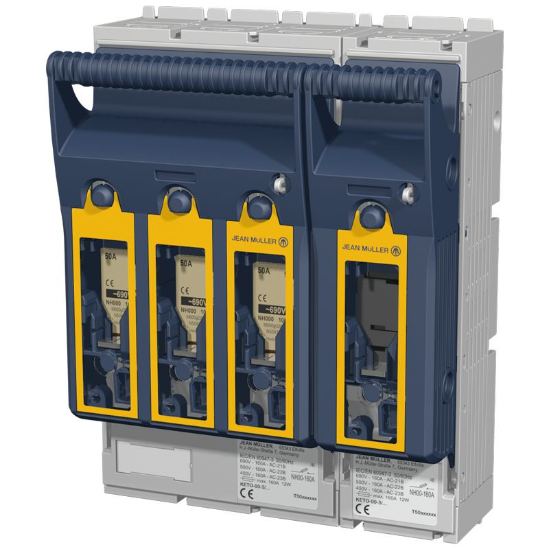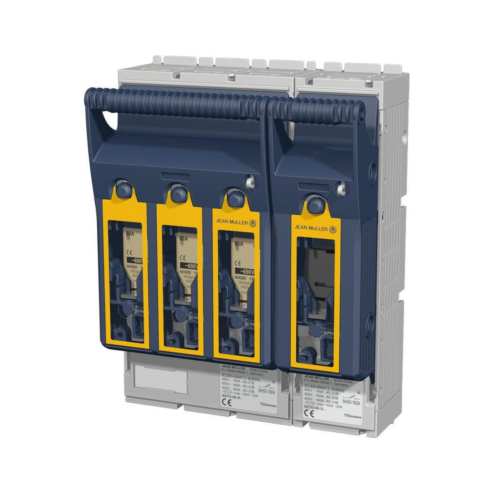 Szakaszolókapcsoló-biztosító, szerelőlapra, lapos csatlakozó 160A, 4P, NH00 KETO-00-4/F Tracon