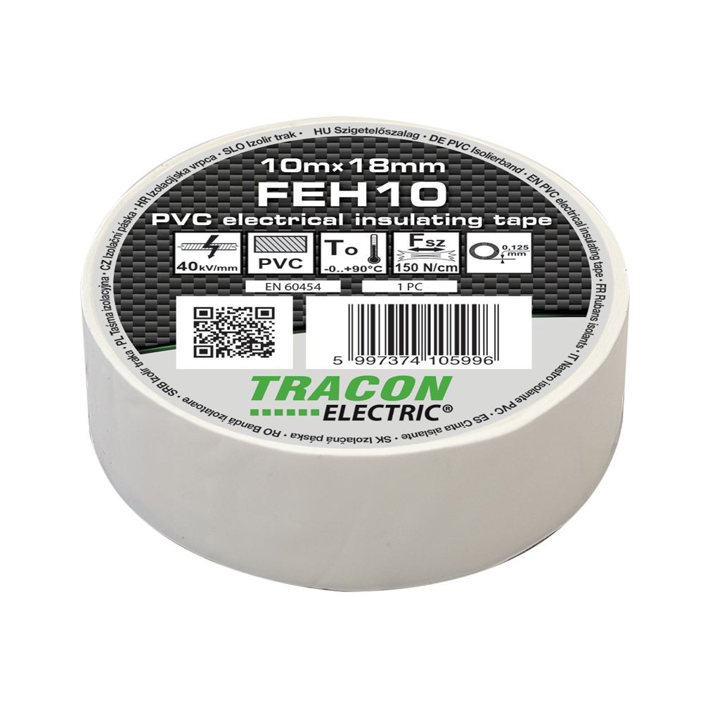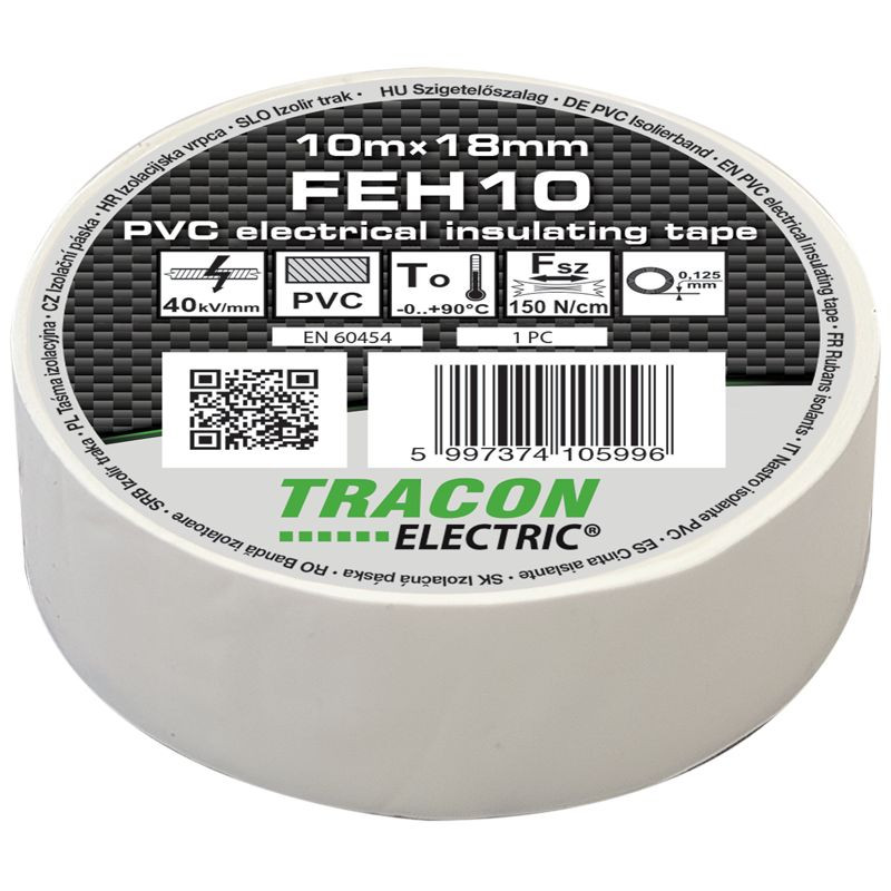 Szigetelő szalag 10x19 fehér Tracon FEH10