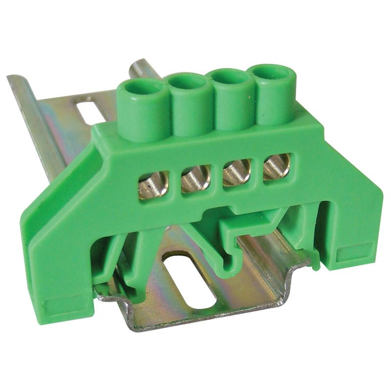 Szigetelt földelősín (N/PE), zöld 63A, 6×9mm, 4P, IP20 NPE-G6-4 Tracon