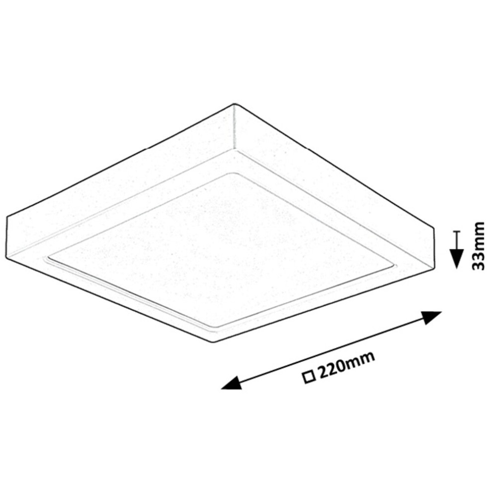 A Shaun 2 Rábalux 071203 szögletes mennyezeti LED lámpa kompakt, 22x22 cm-es méretével és 33 mm-es magasságával ideális választás modern belső terek általános világításához. A lámpatest beépített, 24 W teljesítményű LED modullal rendelkezik, amely 2450 lumen fényáramot biztosít 4000 Kelvin színhőmérsékleten, hidegfehér fénykibocsátással. A termék IP20 védettségi szinttel rendelkezik, így beltéri használatra alkalmas. A lámpatest anyaga műanyag, színe fekete-fehér kombinációjú, amely letisztult megjelenést kölcsönöz a helyiségnek. Átlagos élettartama eléri a 20 000 órát, energiaosztálya F. 230 V névleges feszültségen üzemel, csomagolási méretei 25x25x5 cm, tömege 0,25 kg. A gyártó Rábalux.