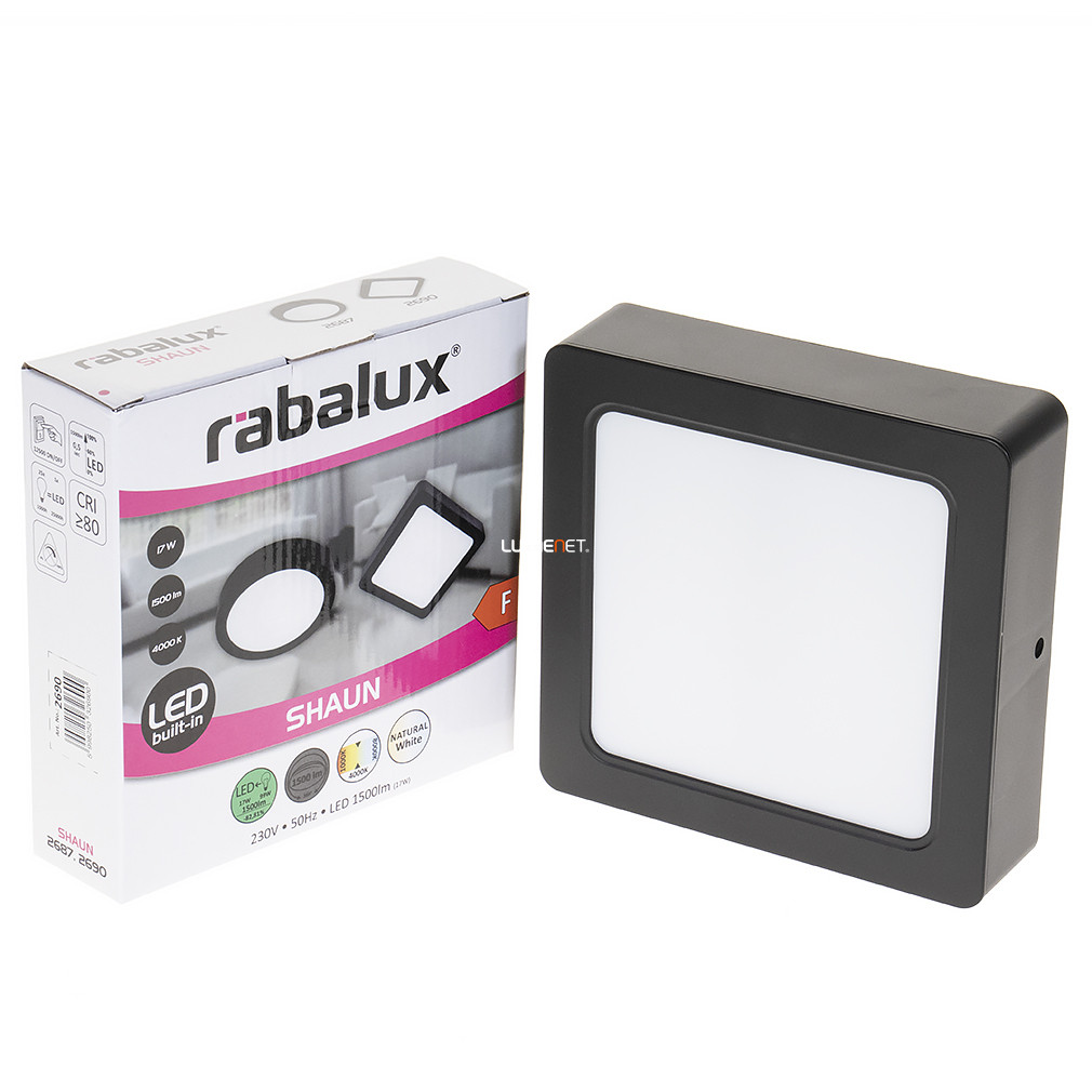 A Shaun Rábalux 2690 szögletes mennyezeti LED lámpa fekete-fehér színben, modern és funkcionális kialakításával ideális választás otthoni vagy irodai használatra. A lámpatest 17 W teljesítményű, beépített LED modullal működik, amely 1500 lumen fényáramot biztosít hidegfehér, 4000 K színhőmérsékleten. A termék méretei 170 x 170 x 45 mm, anyaga tartós műanyag. A lámpa IP20 védettséggel rendelkezik, így beltéri használatra alkalmas. Átlagos élettartama eléri a 25 000 órát, ezzel hosszú távú, megbízható világítást biztosít. A Rábalux termékekre jellemző minőség és letisztult design jellemzi ezt a modellt is, amely LED fényforrással együtt kerül forgalomba.
