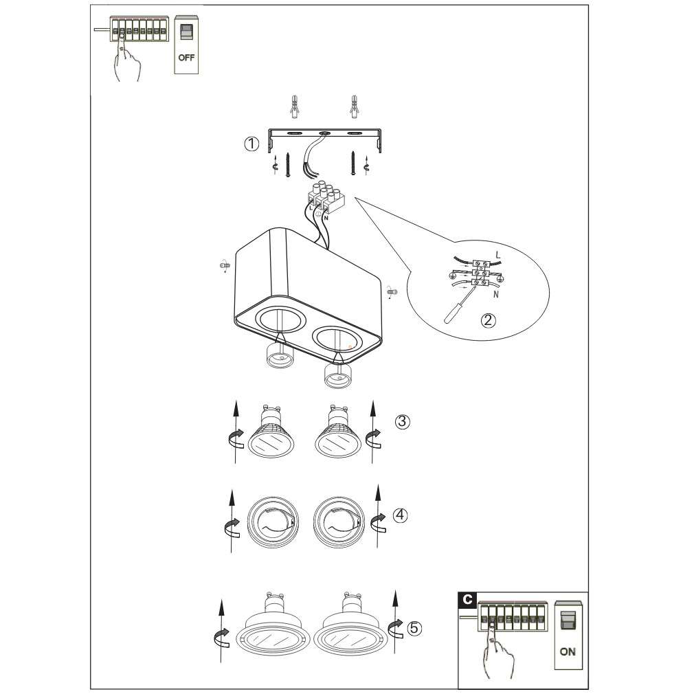 Szögletes spot lámpa dupla foglalattal - Kobald Rábalux 2054