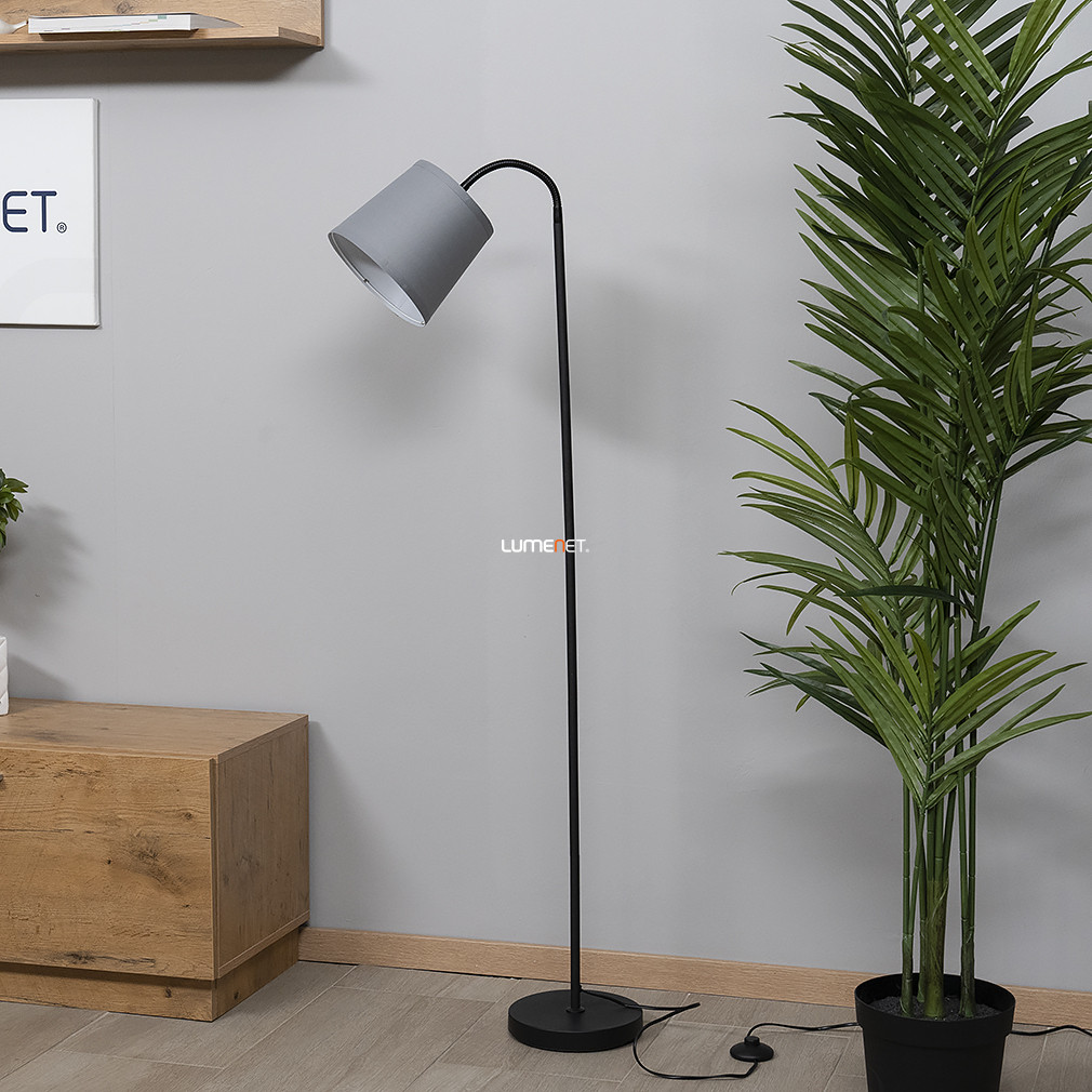 Szürke állólámpa textil ernyővel, 141 cm - Godric Rábalux 6639, zsinórkapcsoló, 1xE27 foglalattal