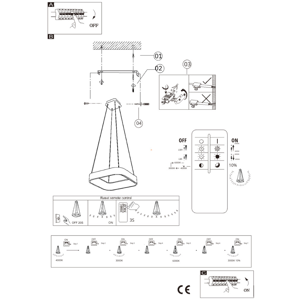 Távirányítós függesztett LED lámpa, hidegfehér/melegfehér, 45x45 cm - Adeline Rábalux 3927