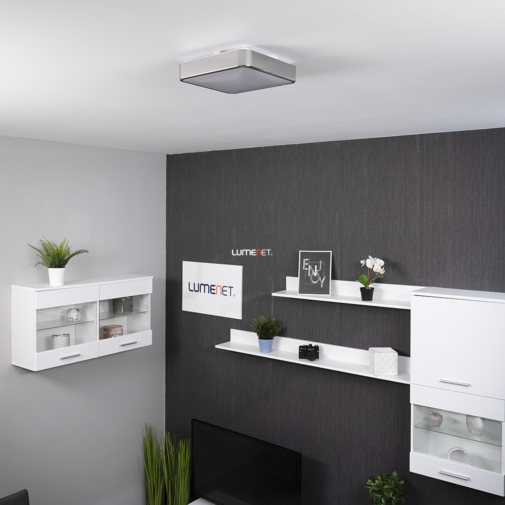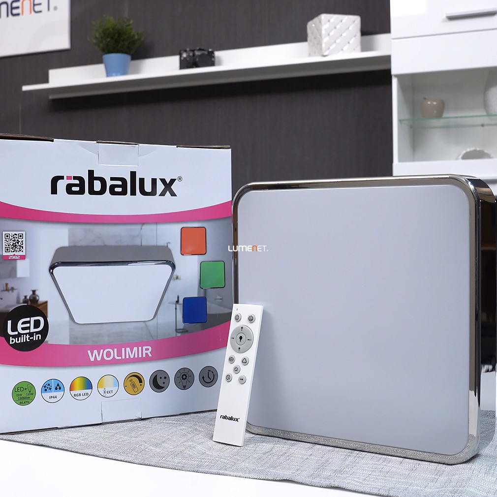 A Wolimir Rábalux 2982 távirányítós fürdőszobai mennyezeti LED lámpa modern technológiával és változtatható fehér színhőmérséklettel rendelkezik, amely 3000 és 6000 Kelvin között szabályozható. A lámpatest 22 W teljesítményű integrált LED modullal működik, amely 1800 lumen fényáramot biztosít, így hatékonyan világítja meg a fürdőszobai tereket. A beépített memória, időzítő és éjjeli fény funkciók kényelmes használatot tesznek lehetővé, míg a mellékelt távirányítóval egyszerűen szabályozható a fényerő és a színhőmérséklet. Az IP44-es védettség gondoskodik a nedvesség elleni védelemről, így a lámpa biztonságosan alkalmazható fürdőszobai környezetben. A termék fém és műanyag anyaghasználattal, króm-fehér színkombinációban, 290x290 mm-es mérettel és 70 mm-es magassággal készül. Átlagos élettartama eléri a 30 000 órát, a LED fényforrás pedig a csomag részét képezi.