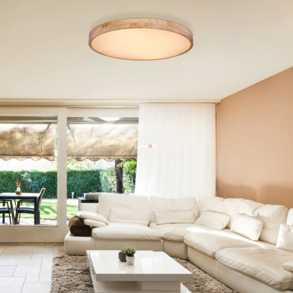 A Rainer Globo 41745-60 egy 60 W teljesítményű mennyezeti LED lámpa, amely változtatható fehér fényt biztosít 3000 és 6000 Kelvin közötti színhőmérséklettel. A lámpatest 3500 lumen fényáramot nyújt, így alkalmas nagyobb helyiségek egyenletes megvilágítására is. A beépített LED modul hosszú élettartamot és energiatakarékos működést garantál. A fényerő és a színhőmérséklet távirányítóval szabályozható, amely a csomag részét képezi. A lámpa anyaga fém és műanyag, színe opál és fa, ami modern megjelenést kölcsönöz a terméknek. 800 mm átmérővel és 105 mm magassággal rendelkezik, védettségi szintje IP20. A Globo gyártó terméke, amely LED modullal szerelt, így további fényforrás beszerzése nem szükséges.
