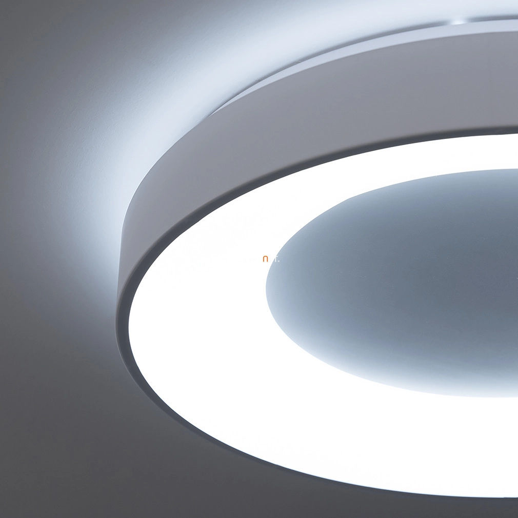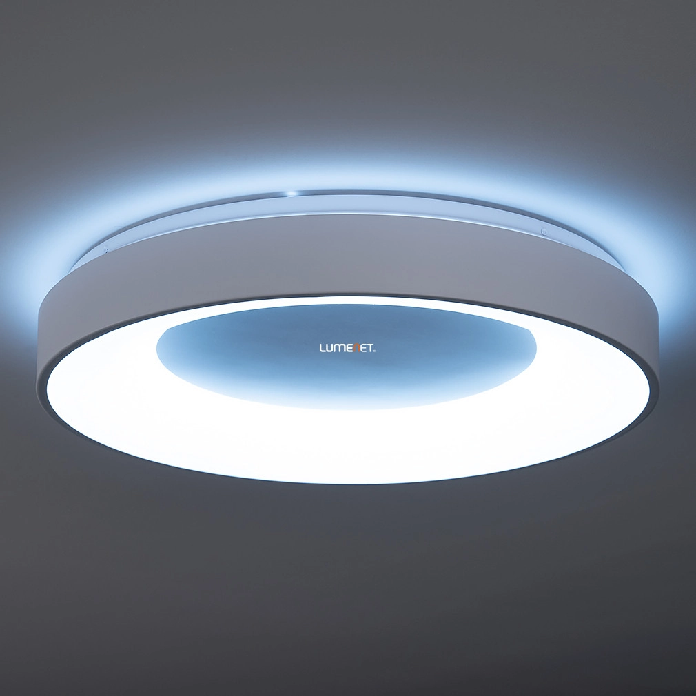 A távirányítós mennyezeti LED lámpa elegáns fehér színben, amely változtatható fényerővel és színhőmérséklettel varázsolja otthonod bármelyik helyiségét hangulatossá.
