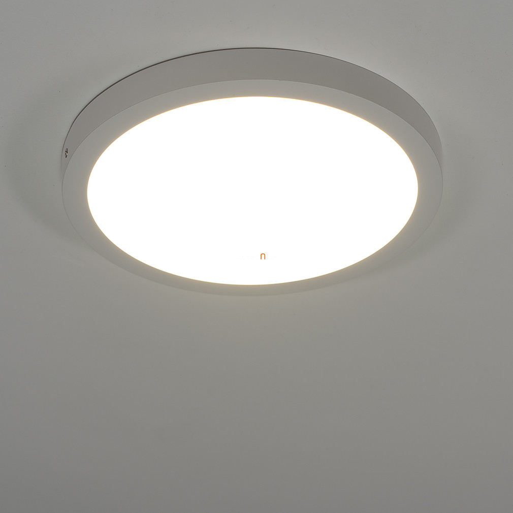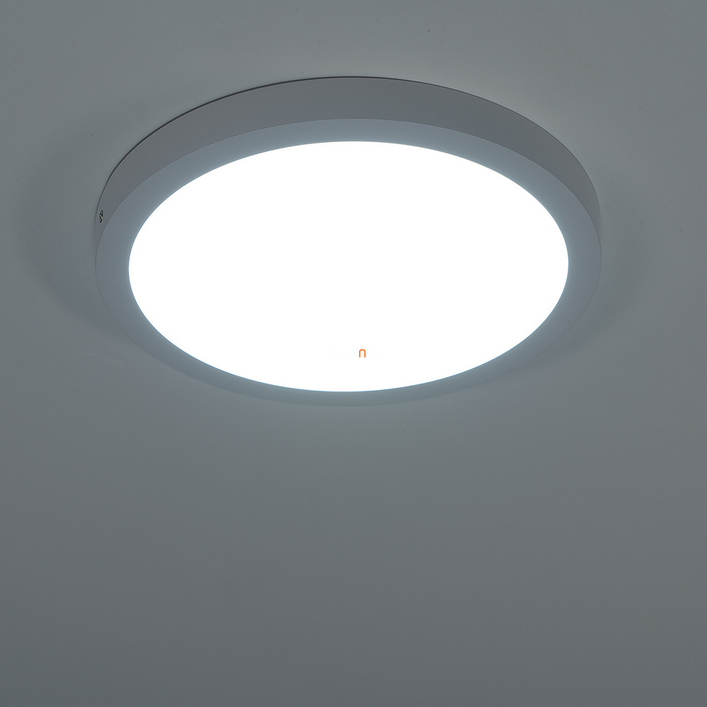 A Fueva-A Eglo 98293 távirányítós mennyezeti LED lámpa 30 cm átmérőjű, modern stílusú világítótest, amely kiválóan alkalmas lakásvilágításra. A lámpa beépített 20 W teljesítményű LED modullal működik, amely 2650 lumen fényáramot biztosít. A fény színhőmérséklete 2700 és 6500 Kelvin között változtatható, így a hideg és melegfehér árnyalatok között szabadon választható a mellékelt távirányítóval, amely a fényerő szabályozását is lehetővé teszi. A lámpatest alapanyaga alumínium és műanyag, fehér színű kivitelben. A termék IP20 védettségi besorolással rendelkezik, így beltéri használatra javasolt. Átlagos élettartama 25 000 óra, a csomag tartalmazza a LED fényforrást. A lámpa magassága 30 mm, átmérője 300 mm, tömege 1,04 kg.