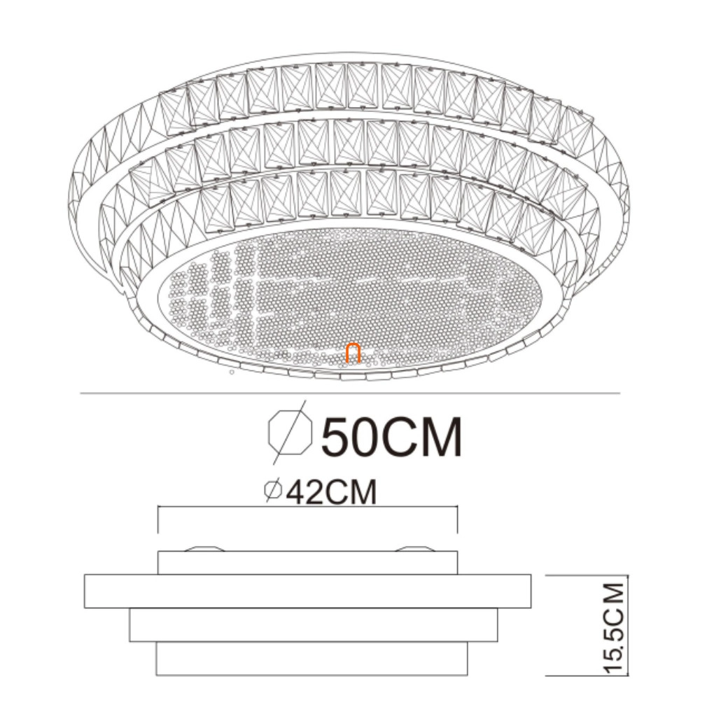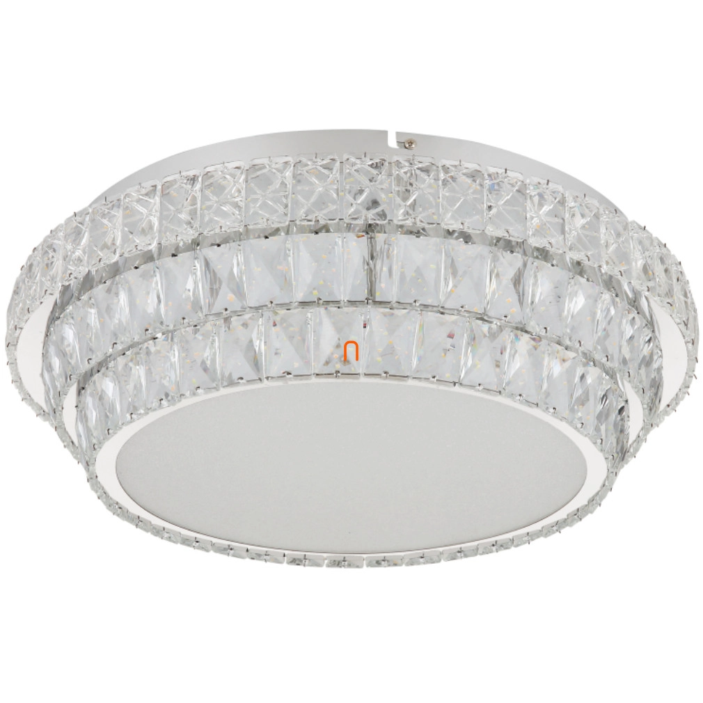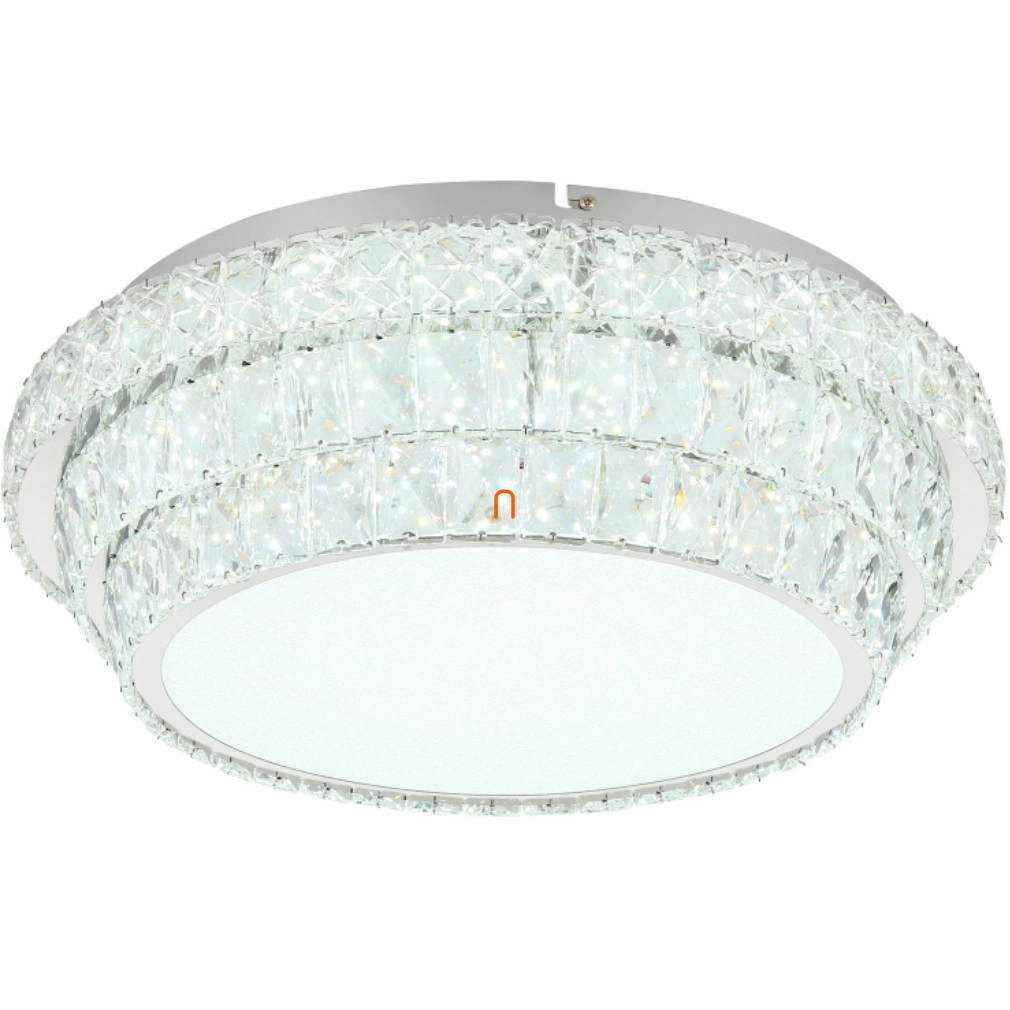 A Klara Globo 68157-48 távirányítós mennyezeti LED lámpa 50 cm-es átmérővel, K5 kristály berakással és króm-áttetsző kivitelben készült. A lámpatest 48 W teljesítményű integrált LED modullal rendelkezik, amely 3400 lumen fényáramot biztosít, valamint fényének színhőmérséklete 2700 és 6000 Kelvin között változtatható. A világítás vezérlése mellékelt távirányítóval történik, amellyel dimmelhető, valamint memória és éjjeli fény funkciók is elérhetők. A lámpa anyaga fém és műanyag, védettsége IP20, működtetéséhez 230 V névleges feszültség szükséges. A termék tömege 5,88 kg, magassága 155 mm, átmérője 500 mm. A csomagolás mérete 56x56x20 cm. A fényforrás a lámpatestbe integrált LED modul, amely hosszú élettartamot és energiatakarékos működést biztosít.
