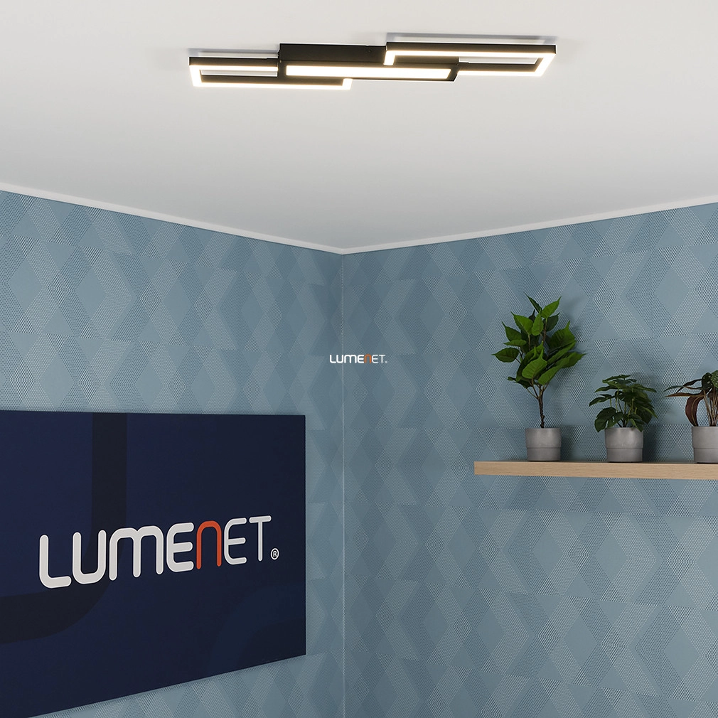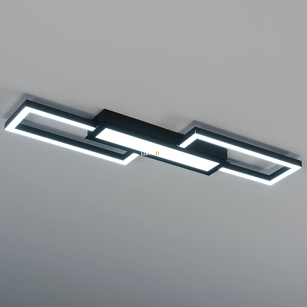 A Monirote Eglo 99792 egy 78 cm hosszúságú, minimál stílusú mennyezeti LED lámpa, amelyet távirányítóval lehet vezérelni. A lámpatest 37 wattos LED modullal működik, amely 4450 lumen fényáramot biztosít, így alkalmas nagyobb helyiségek egyenletes megvilágítására is. A fény színe változtatható fehér (TW), 3000 és 6500 Kelvin közötti tartományban szabályozható, így a világítás intenzitása és színhőmérséklete az igényekhez igazítható. A lámpa acél és alumínium anyagból készült, fekete-fehér színkombinációban érhető el, modern megjelenést kölcsönözve a belső térnek. Az IP20-as védettségi szint beltéri használatra teszi alkalmassá. A termékhez tartozik a LED fényforrás, valamint a távirányító is, amely lehetővé teszi a fényerő és színhőmérséklet kényelmes szabályozását. A lámpa 45 mm magasságával diszkréten illeszkedik a mennyezethez, miközben korszerű és energiatakarékos világítási megoldást kínál.
