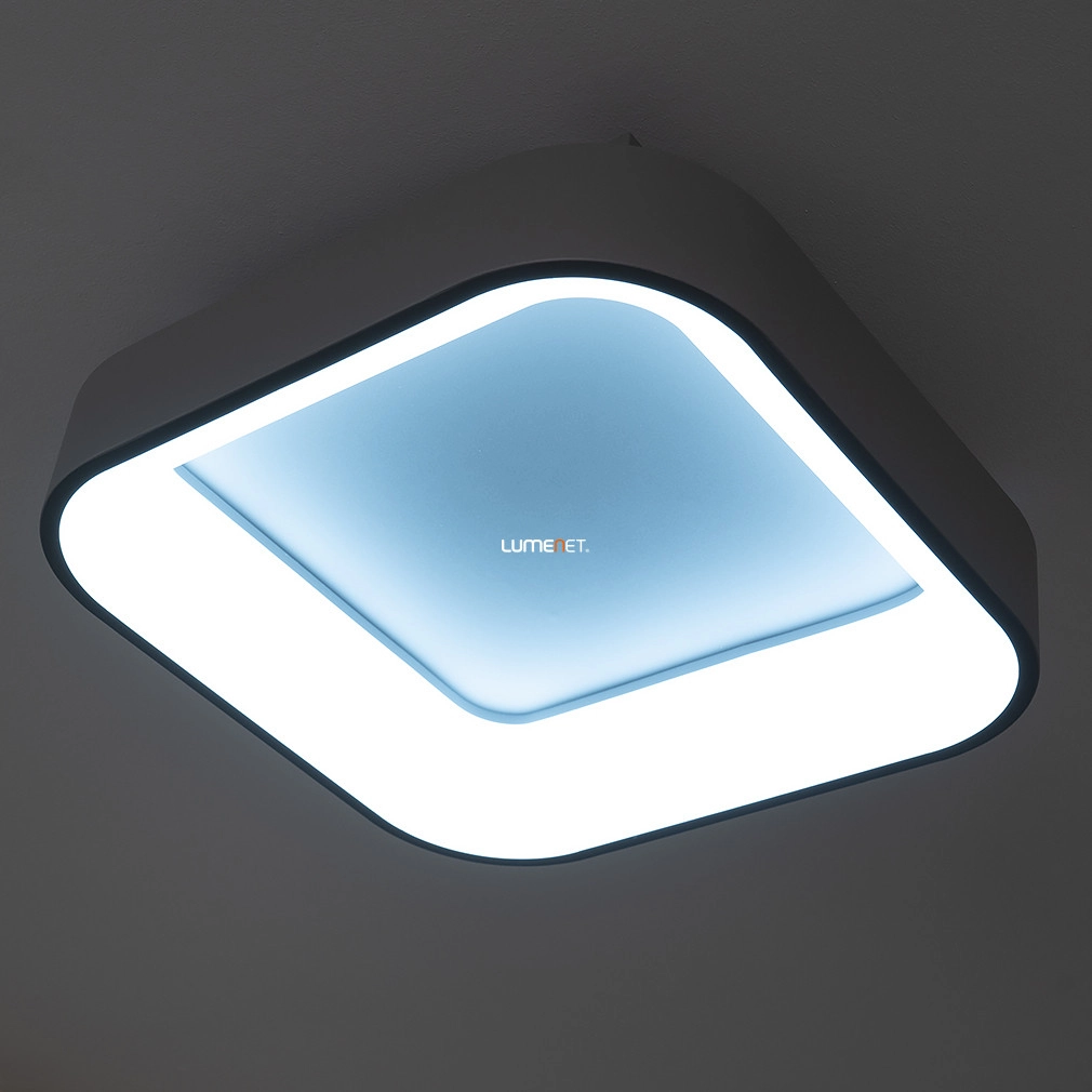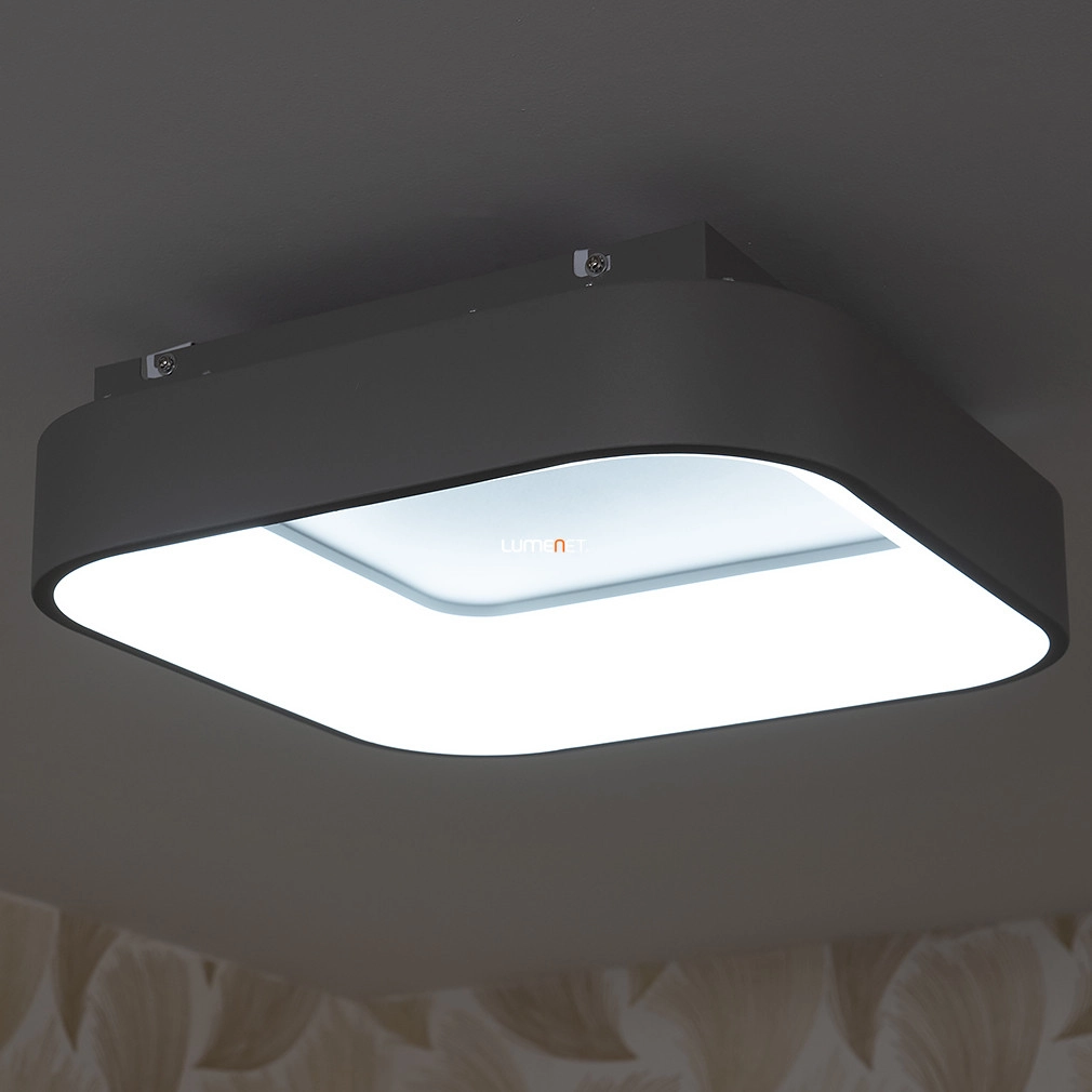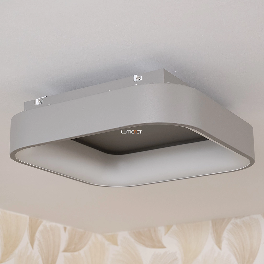 A távirányítós mennyezeti LED lámpa szürke színben, modern dizájnnal és változtatható fehér fényárnyalattal, tökéletes választás minden otthonba.