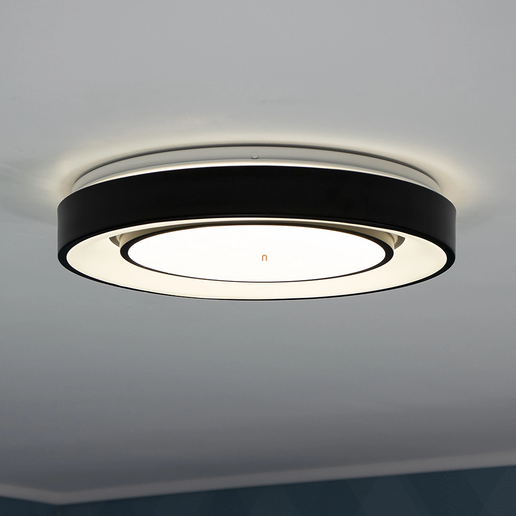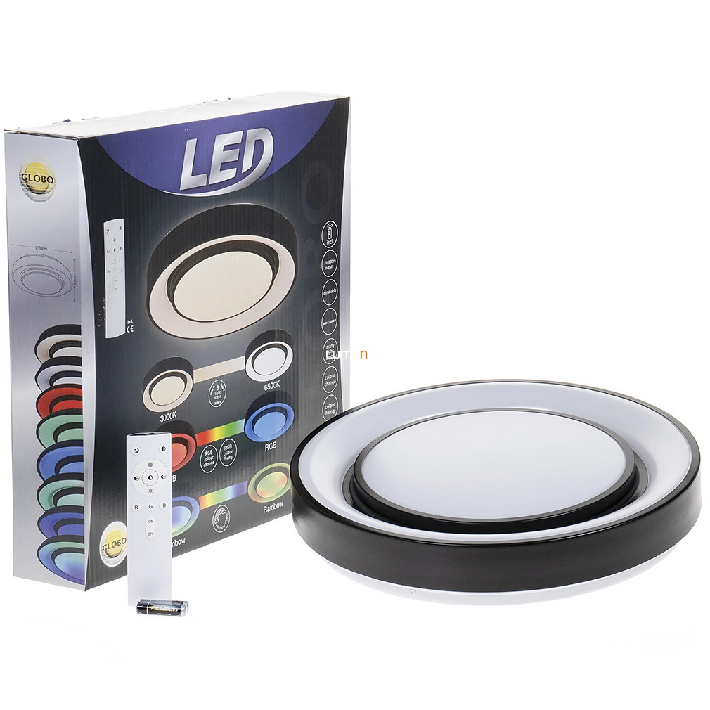 A Sully Globo 41368-24 távirányítós mennyezeti LED lámpa modern technológiával és változtatható színekkel rendelkezik, amelynek fényárama 1500 lumen és teljesítménye 24 W. A lámpatest beépített LED modullal működik, amely 3000 és 6500 Kelvin közötti színhőmérsékletet biztosít, lehetőséget adva a fehér fény árnyalatainak és az RGBW színek kiválasztására. A termék vezérlése a mellékelt távirányítóval történik, így a fényerő és a színhőmérséklet egyszerűen szabályozható, továbbá éjszakai fény funkcióval is rendelkezik. Az IP20 védettségű, 38 cm átmérőjű és 7,5 cm magas lámpatest fém és műanyag anyagból készült, fekete és opál színkombinációban. A lámpa csomagolása 41 x 41 x 9 cm méretű, tömege 1,2 kg. A terméket a Globo. gyártja.