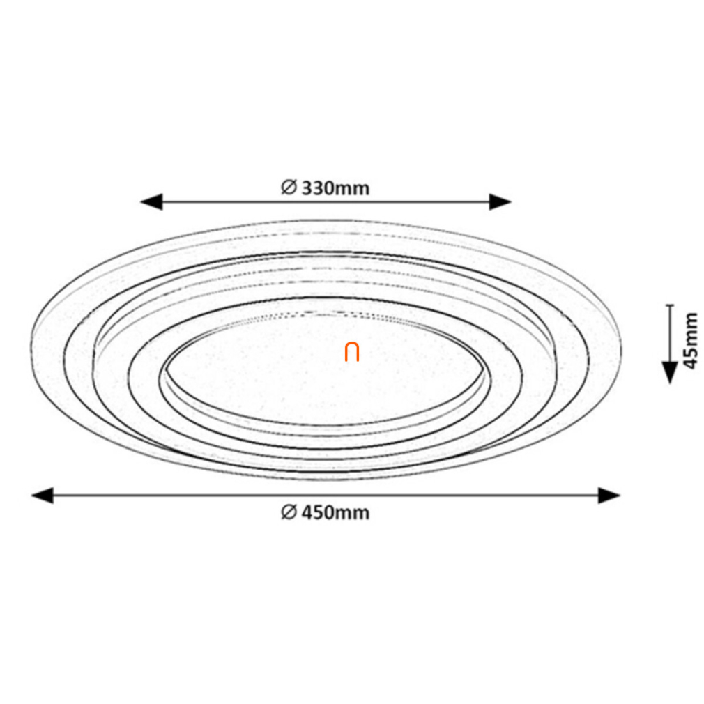 A Taneli 2 Rábalux 71315 mennyezeti LED lámpa modern, króm színű kialakítással és 45 cm átmérővel rendelkezik. A lámpatest teljesítménye 56 W, amely beépített LED modullal működik, és 5350 lumen fényáramot biztosít. A fény színhőmérséklete 3000 K, 4000 K és 6000 K között változtatható, így a világítás a kívánt hangulathoz igazítható. A fényerő és a színhőmérséklet távirányítóval szabályozható, amely a csomag része. A termék anyaga fém és műanyag, színei króm, fehér és fekete. A lámpa névleges feszültsége 230 V, energiaosztálya F, átlagos élettartama 20 000 óra. A lámpatest IP20 védettségi besorolású, magassága 45 mm, logisztikai kódja 71315. A terméket a Rábalux gyártja.
