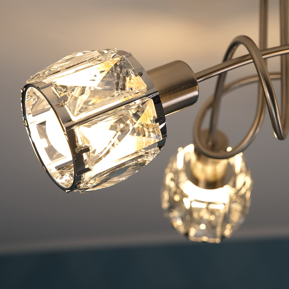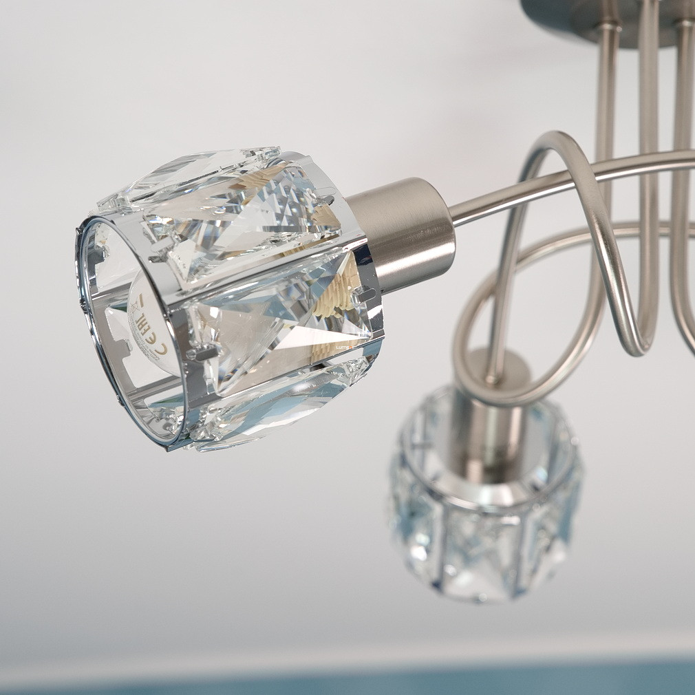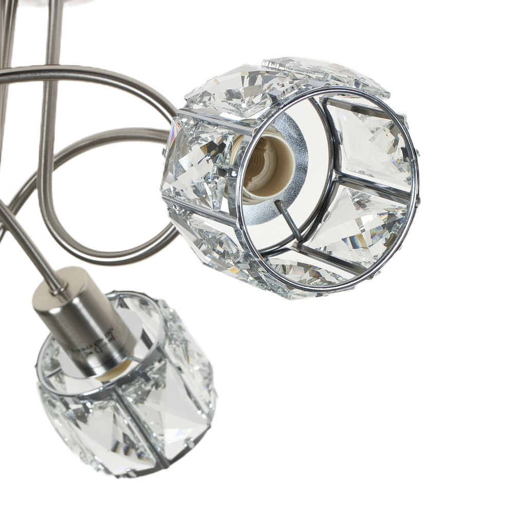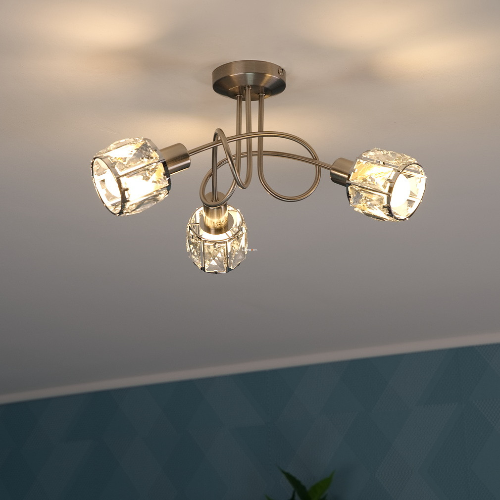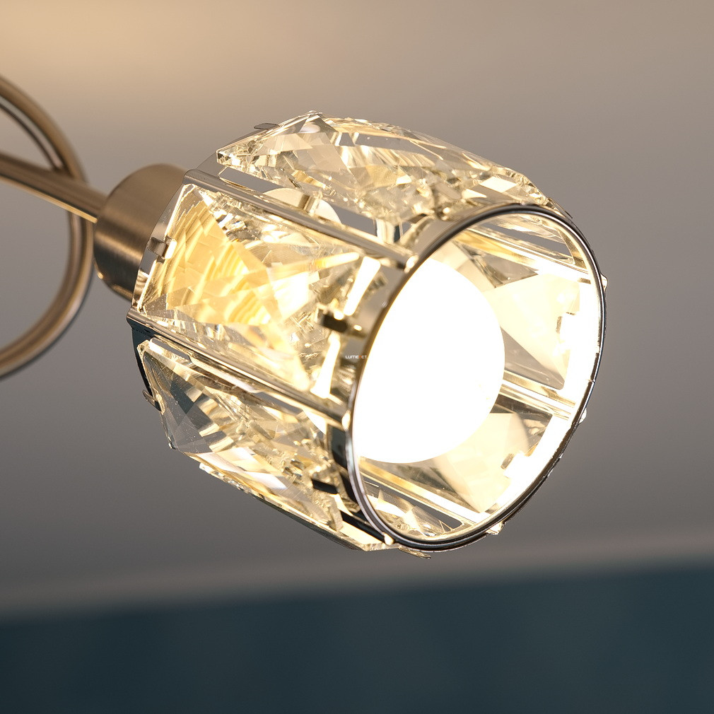 Ez a modern, kristály berakásos mennyezeti lámpa elegáns króm és üveg anyagával varázsolja el otthonodat, miközben a cserélhető fényforrásokkal mindig a megfelelő hangulatot teremtheted meg.