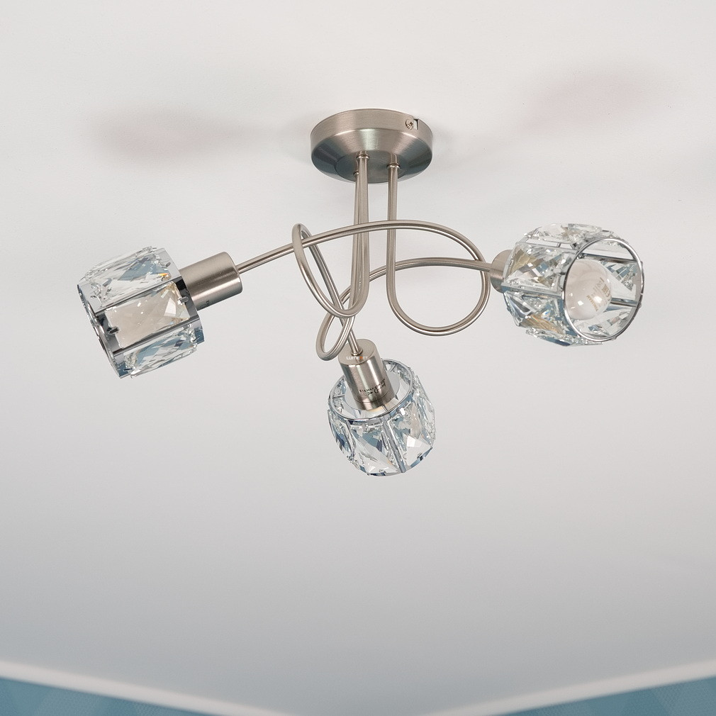 A Tekeredő mennyezeti lámpa kristály berakással egy igazi ékszer a lakásodban. A króm és üveg kombinációja modern eleganciát sugároz, miközben a kristály berakások különleges fényjátékot hoznak létre. A lámpa három E14 foglalattal rendelkezik, így a fényforrások cserélhetők, hogy mindig a kívánt fényerőt és színhőmérsékletet biztosítsák. Az átmérője 380 mm, magassága pedig 240 mm, így ideális választás bármelyik szobába, ahol a stílus és a funkcionalitás találkozik.