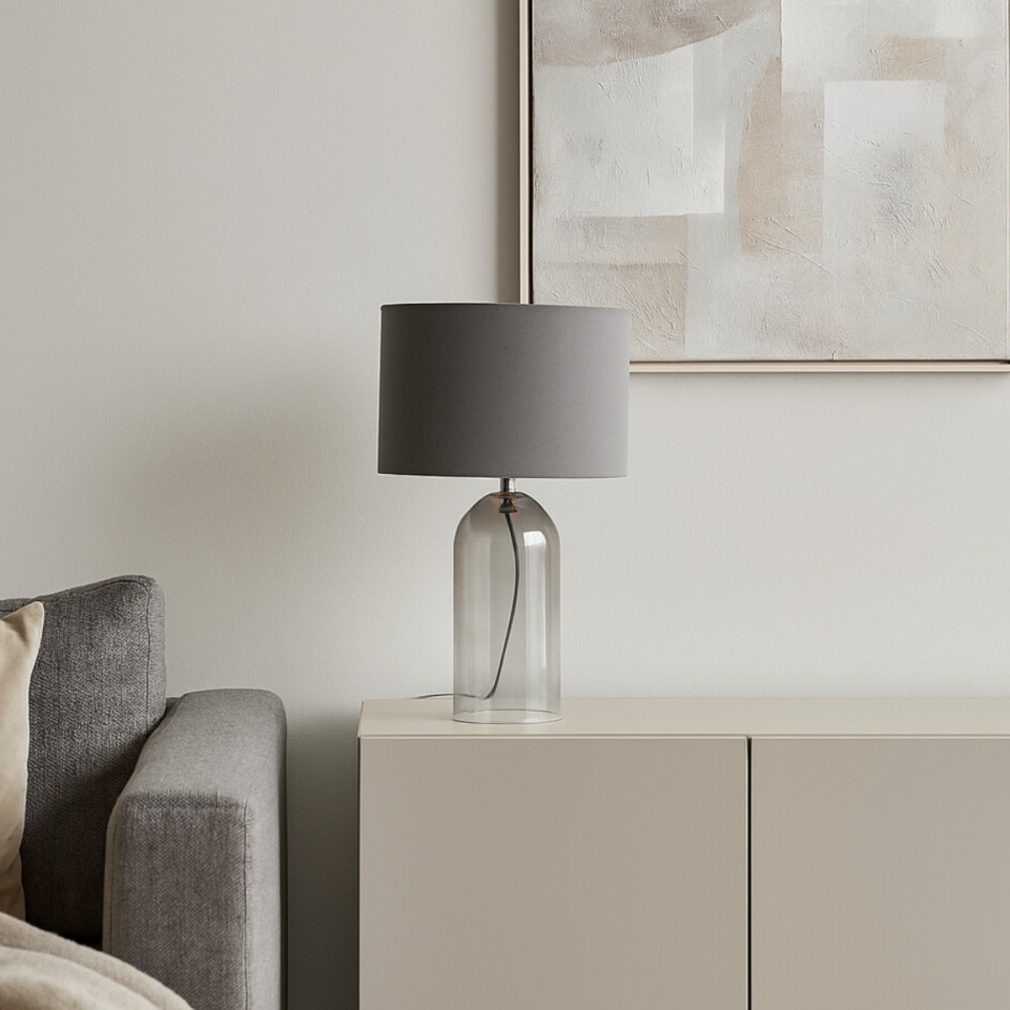 Textil asztali lámpa, üveg talpas, 45 cm - Luxin Rábalux 74048 1xE14 foglalattal