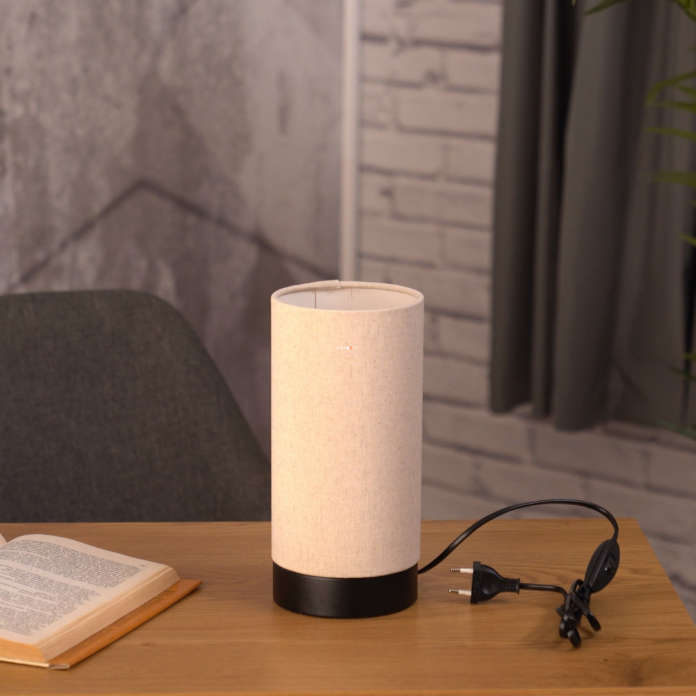 A Feniglia Eglo 900861 textil éjjeli lámpa 25 cm-es magassággal és 12 cm átmérővel rendelkezik, modern megjelenését fekete textil burkolat és fa hatású acél talp biztosítja. A lámpatest egy darab E27 foglalattal szerelt, amelybe tetszőleges teljesítményű és színhőmérsékletű, cserélhető fényforrás helyezhető el. A termék nem tartalmaz fényforrást. IP20 védettségi szintje beltéri használatra teszi alkalmassá, a 0,416 kg-os tömeg könnyű kezelhetőséget eredményez. A lámpa gyártója az EGLO, logisztikai kódja 900861. A csomagolás méretei: 14 cm szélesség, 30 cm hosszúság és 14 cm magasság.