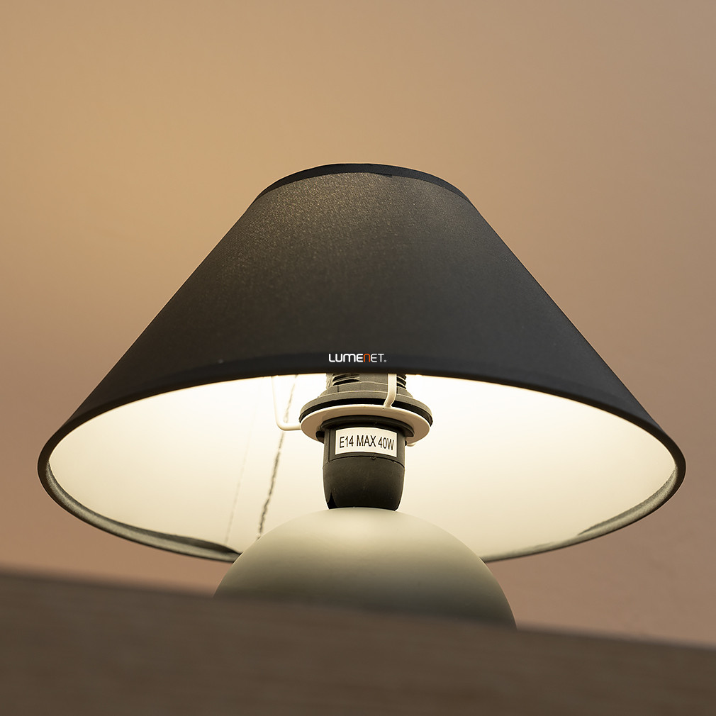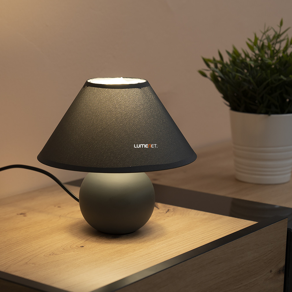 A Rábalux Ariel 2146 éjjeli lámpa modern stílusban készült, szürke színű textil burával és kerámia talppal rendelkezik. A lámpatest 19 cm magas, átmérője 20 cm, így kompakt méretének köszönhetően könnyen elhelyezhető az éjjeliszekrényen vagy íróasztalon. Egy darab E14 foglalattal szerelt, a fényforrás nem tartozék, így a fényáram, színhőmérséklet és teljesítmény igény szerint választható. A termék IP20-as védettséggel rendelkezik, beltéri használatra alkalmas. A csomagolás méretei 17x17x17 cm, a lámpa tömege 0,5 kg. A Rábalux által gyártott modell logisztikai kódja 2146.